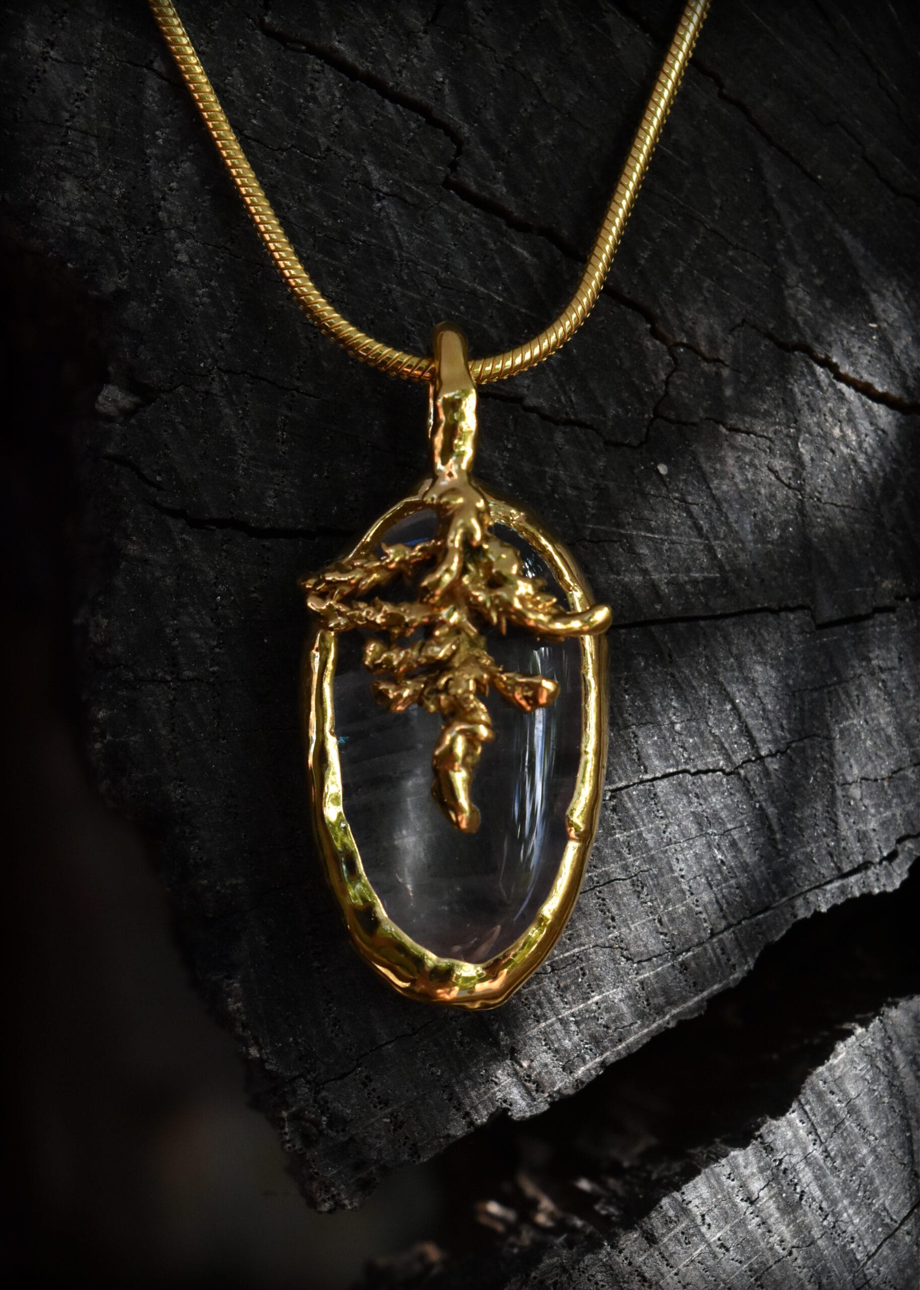 ⚜︎ Pakabukas sukurtas iš tikros samanos bei kvarco mineralo. Tai yra tikras augalas, elektrolizės būdu apaugintas variu, tada kelių mikronų gryno aukso sluoksniu.⚜︎ Papuošalas parduodamas kartu su sidabrine auksuota grandinėle, sveria 9,2 g, sukurta iš 925 prabos sidabro.⚜ Prabuota Lietuvos prabavimo rūmuose.⚜ Papuošalas parduodamas supakuotas dovanų pakuotėje.