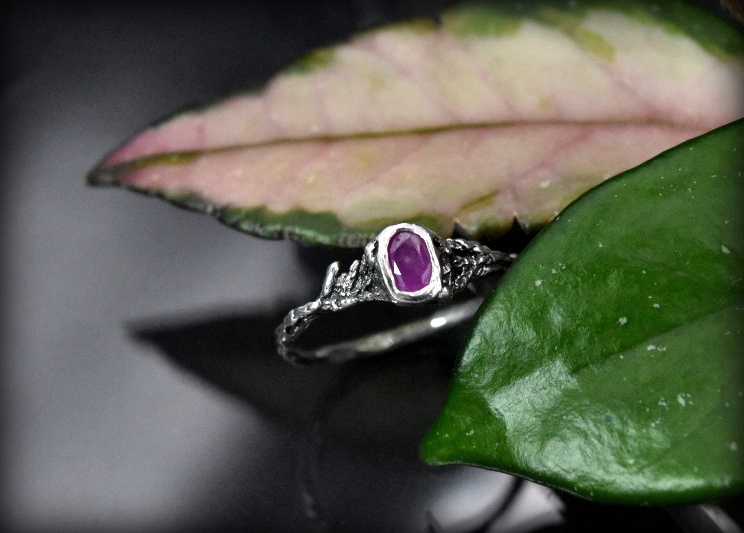⚜ Smulkus tamsinto sidabro žiedas su rubino akmeniu⚜ Šio minimalistinio žiedo dizainas primena spygliuočio augalo šakelę.⚜ Dydis 19⚜ Prabuota Latvijos prabavimo rūmuose, brangakmenio specifikacijos įrašytos paskutinėje nuotraukoje. Sidabro praba 925, sveria 1,71 g. ⚜ Papuošalas atkeliauja supakuotas dovanų dėžutėje.
