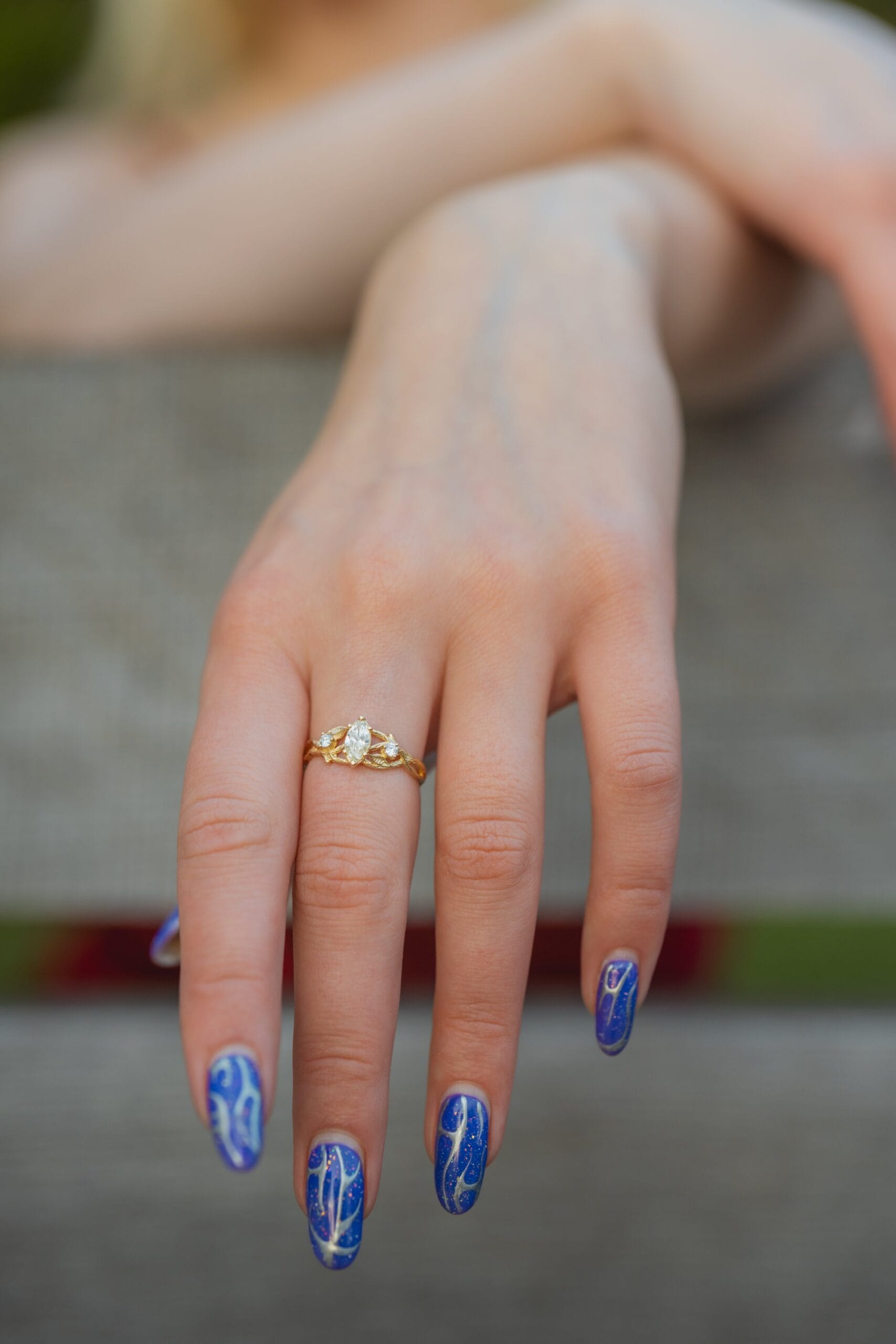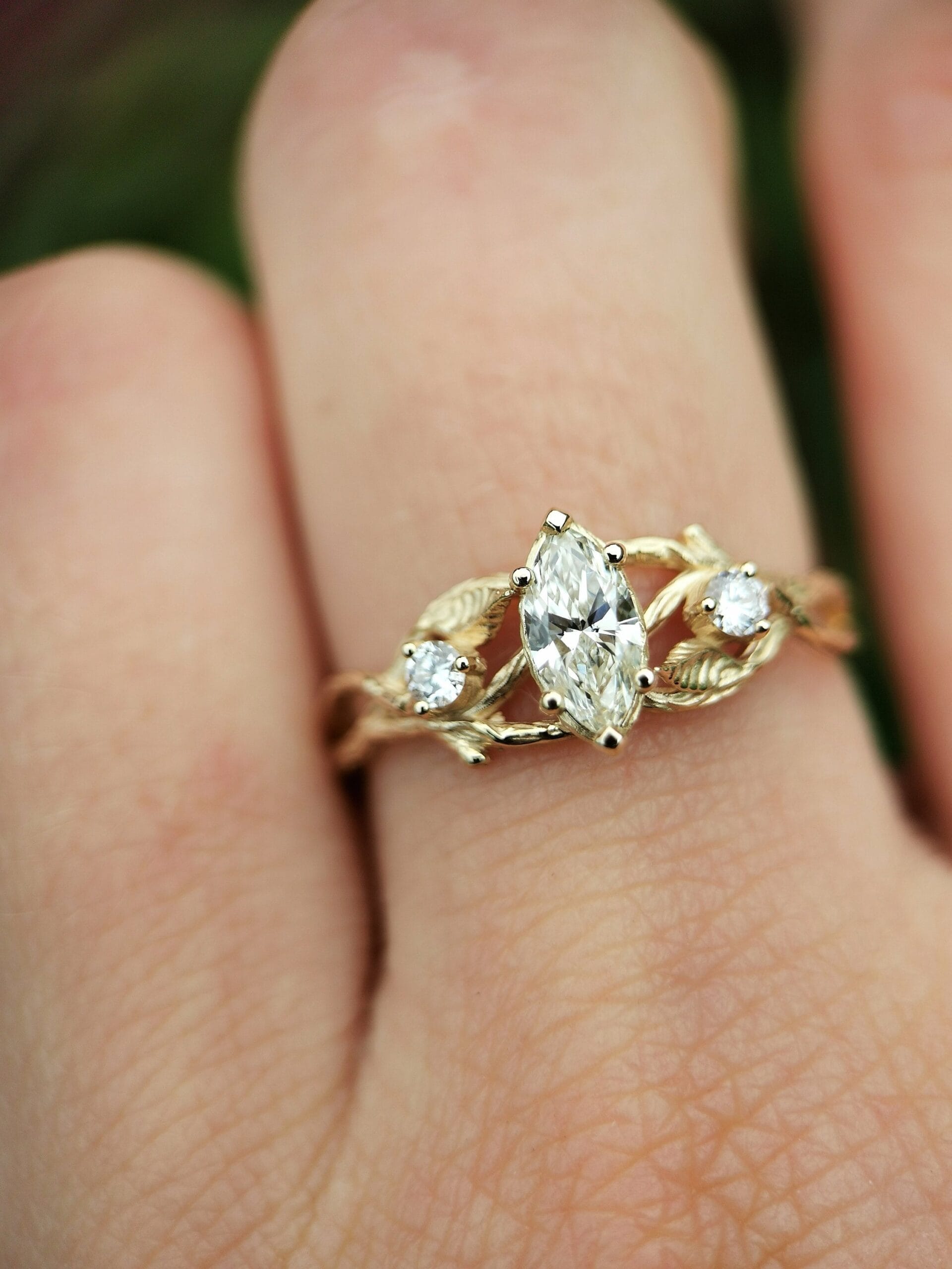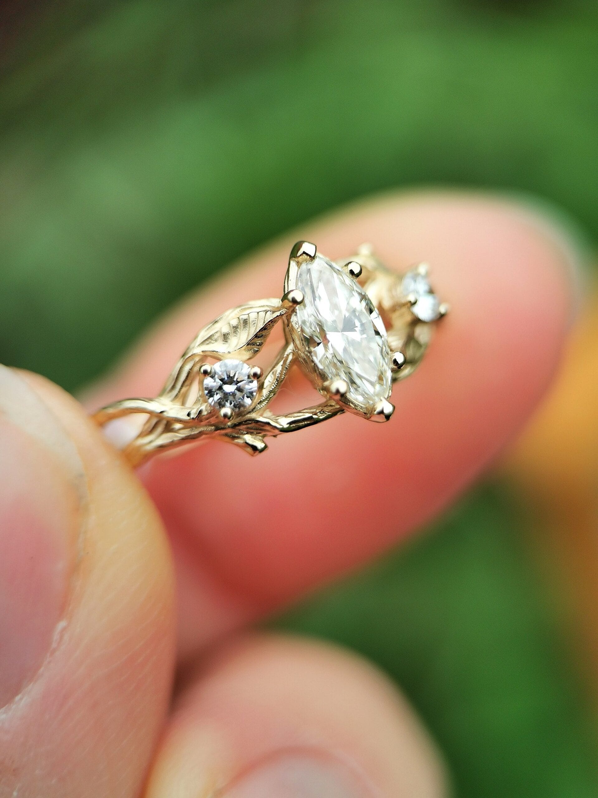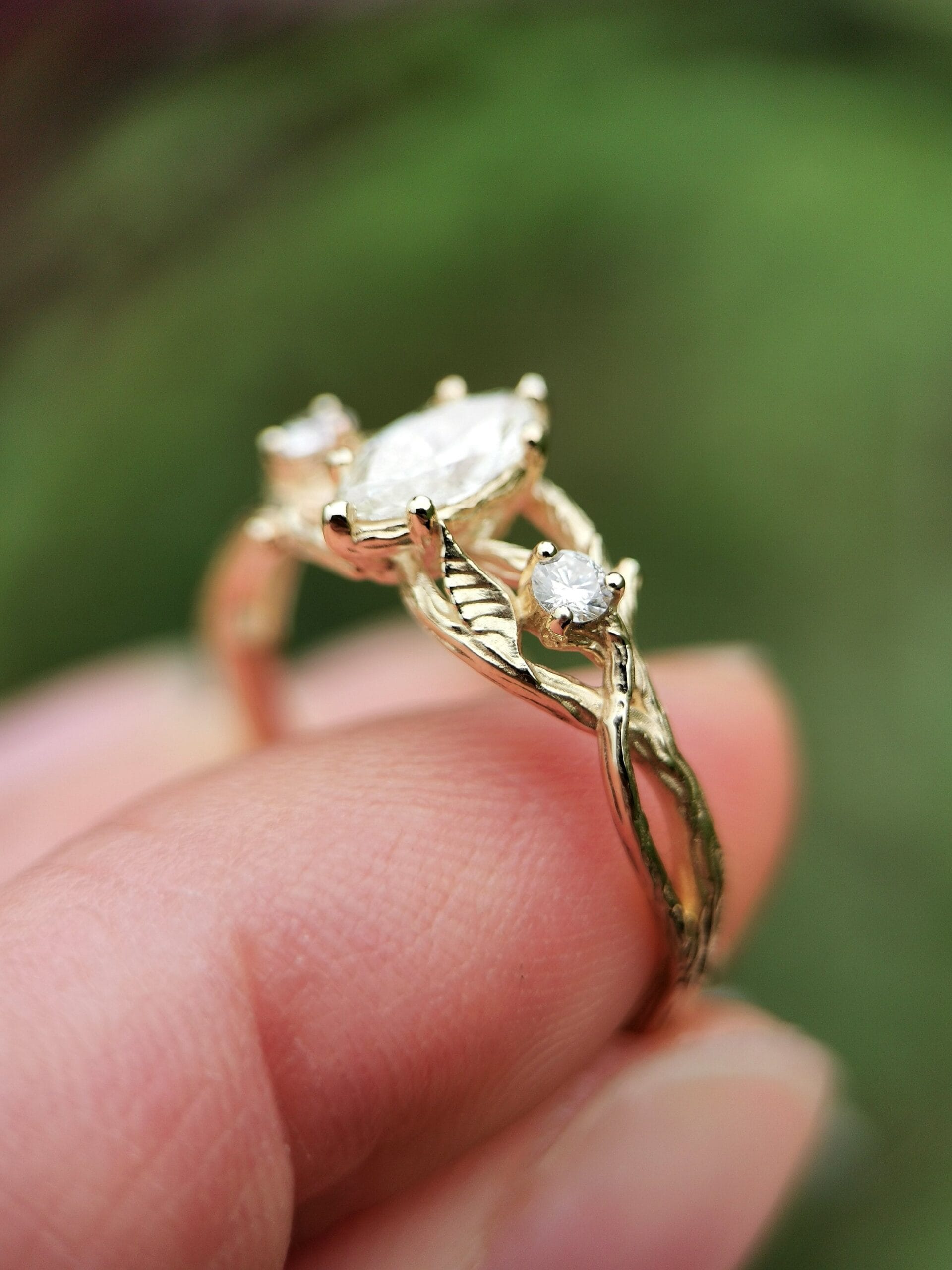 ⚜︎ Autorinis žiedas su subtiliu gamtos įkvėptu šakelių ir lapelių dizainu.