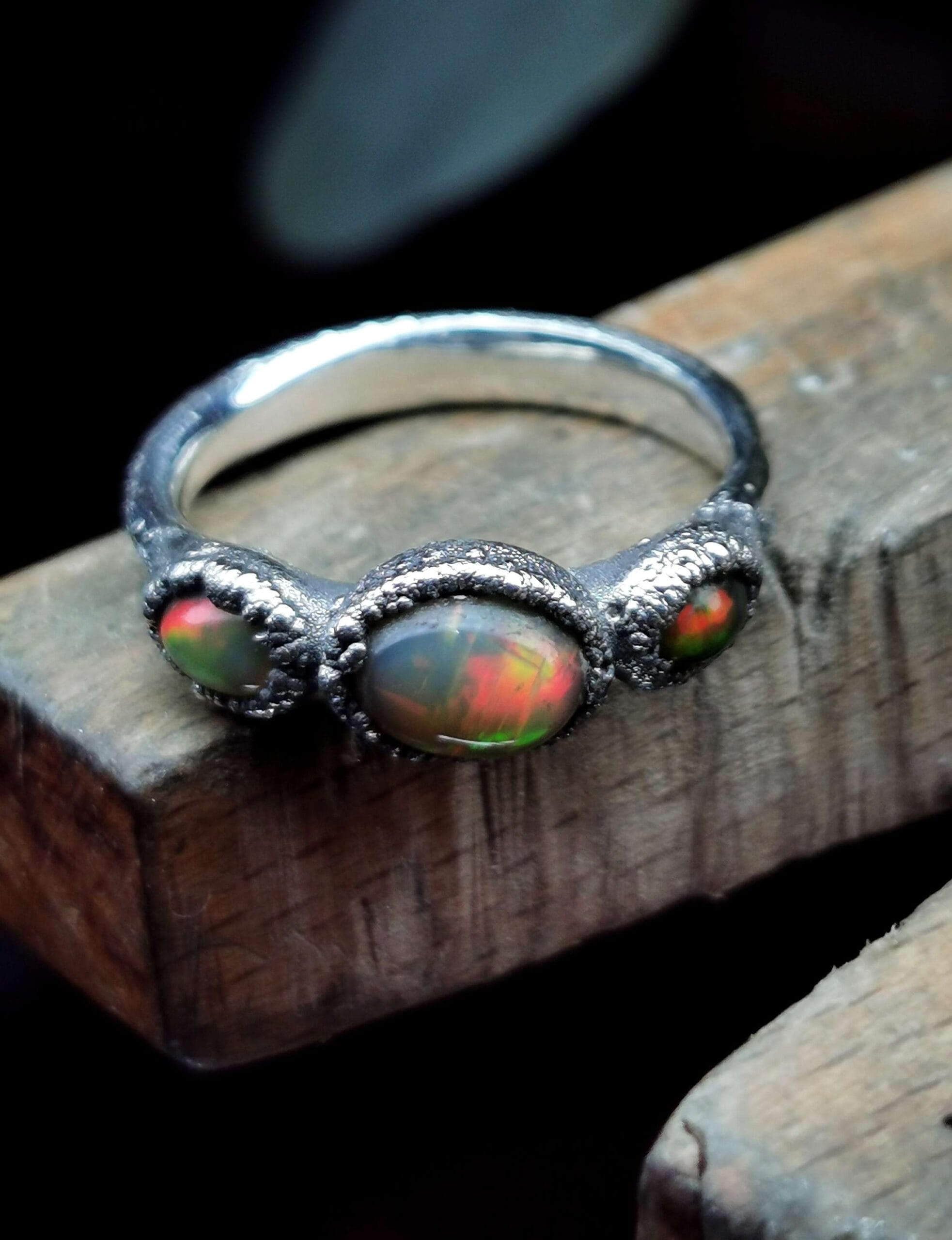 Trijų opalų žiedas