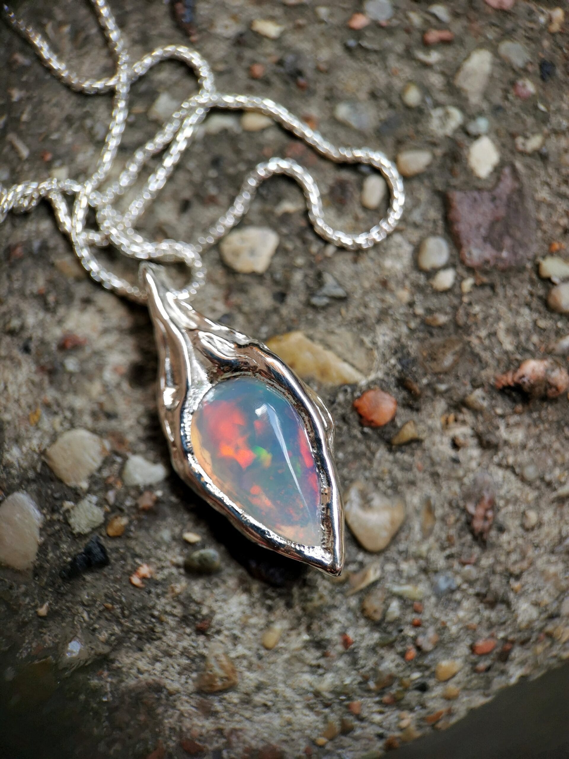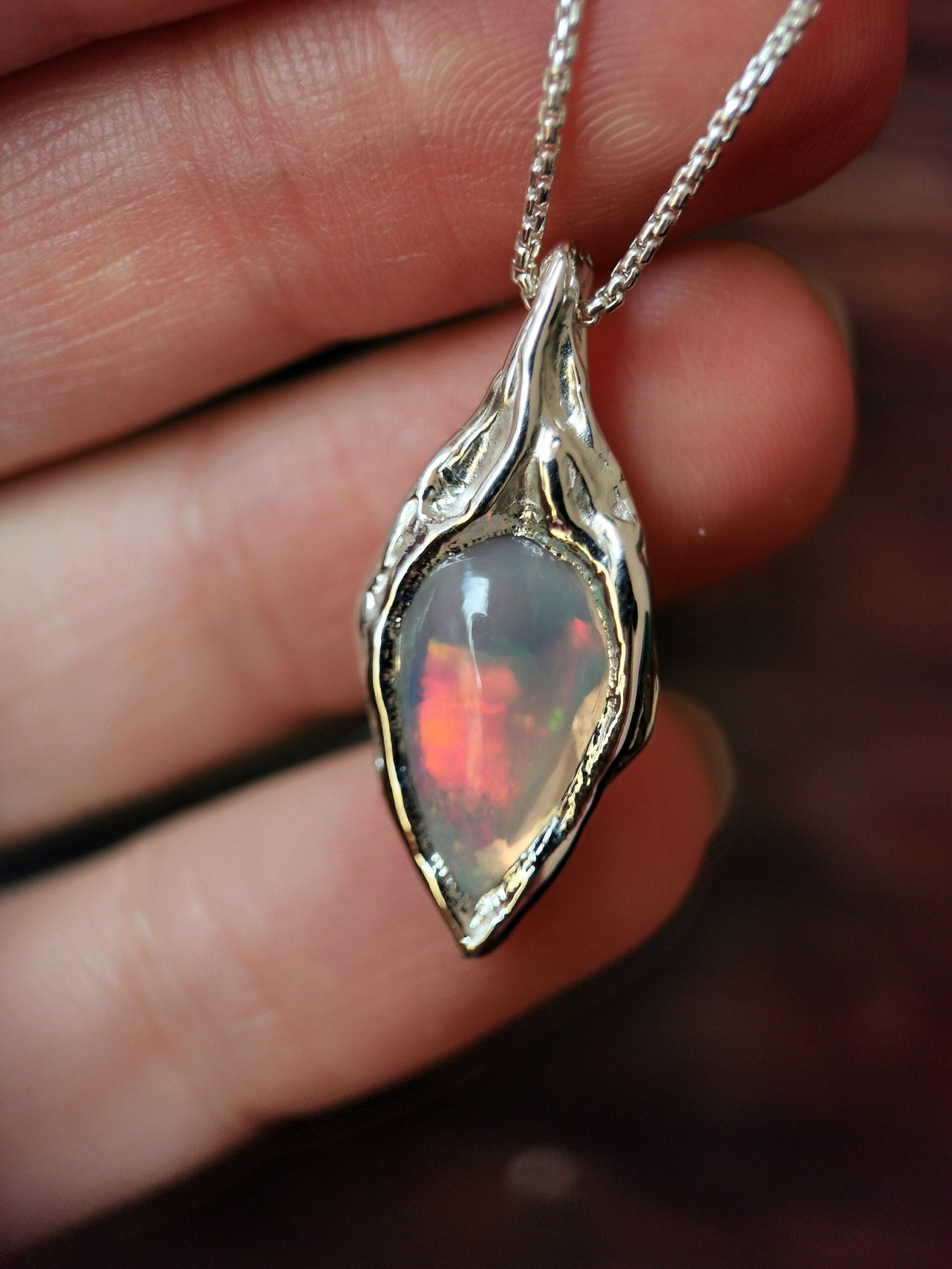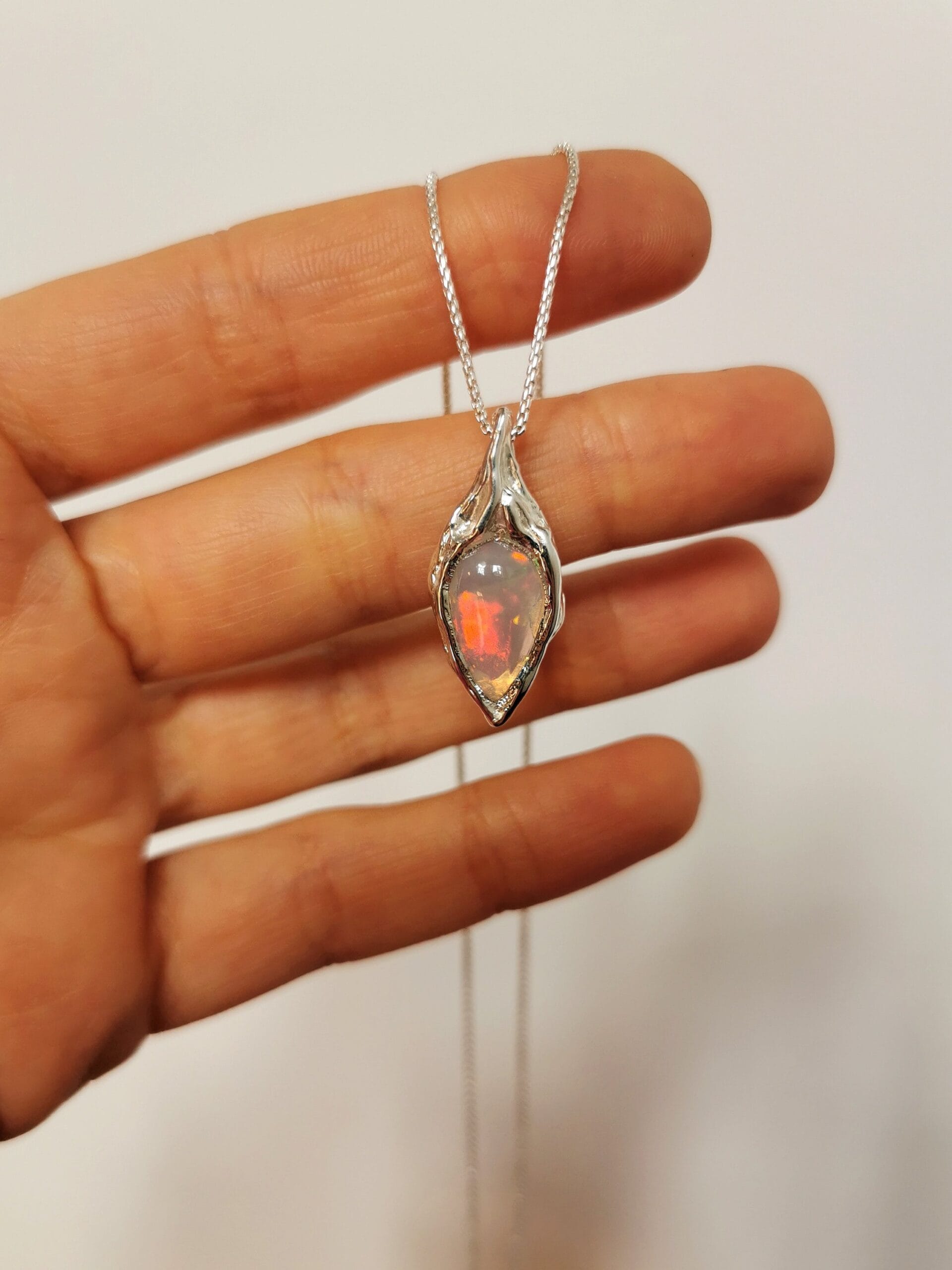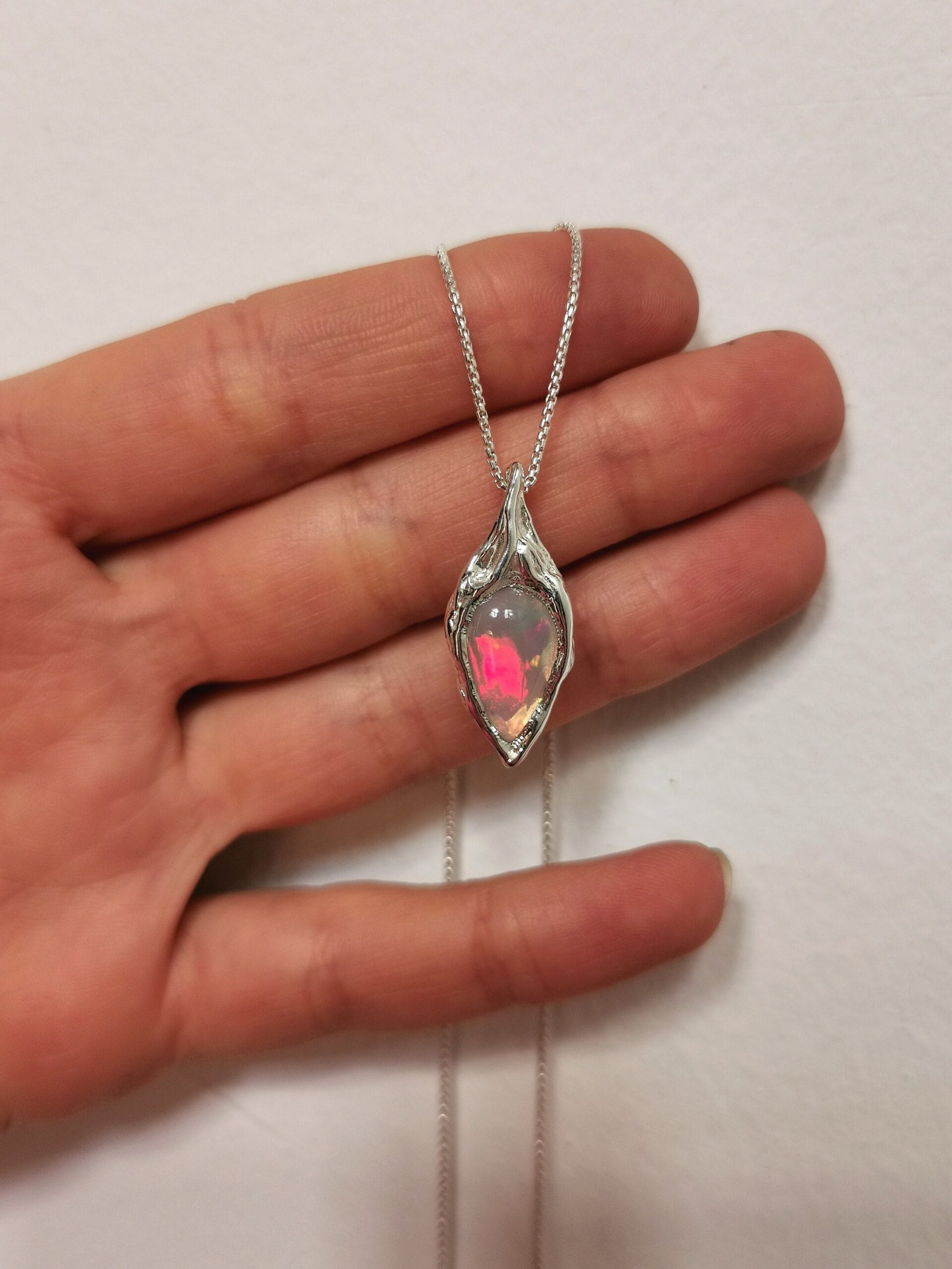 ⚜︎ Šis pakabukas spinduliuoja mistika ir ugnies švytėjimu. Forma primena liepsną arba pumpurą, o opalo spalvų žaismas – tarsi viduje rusenanti paslaptis.
