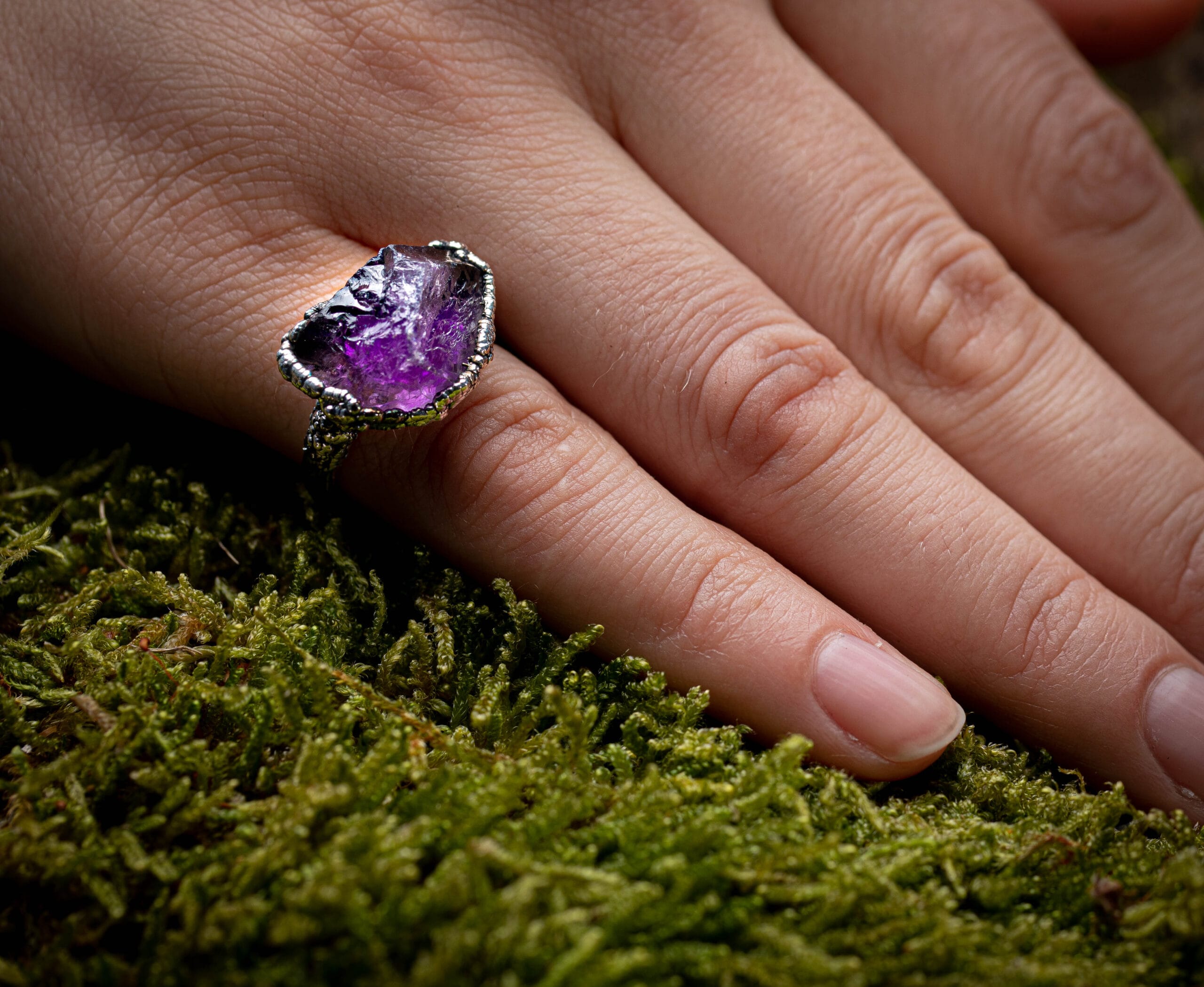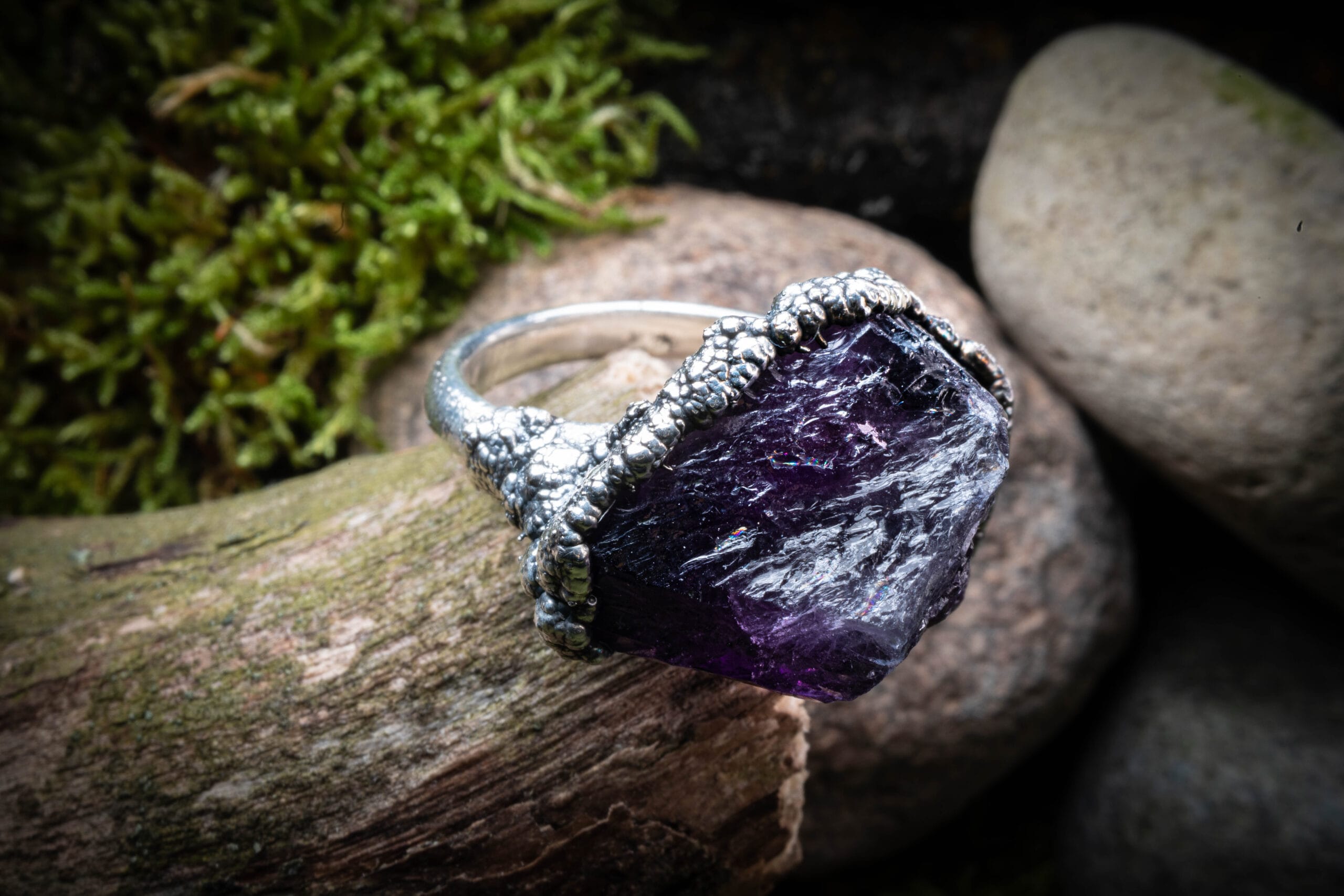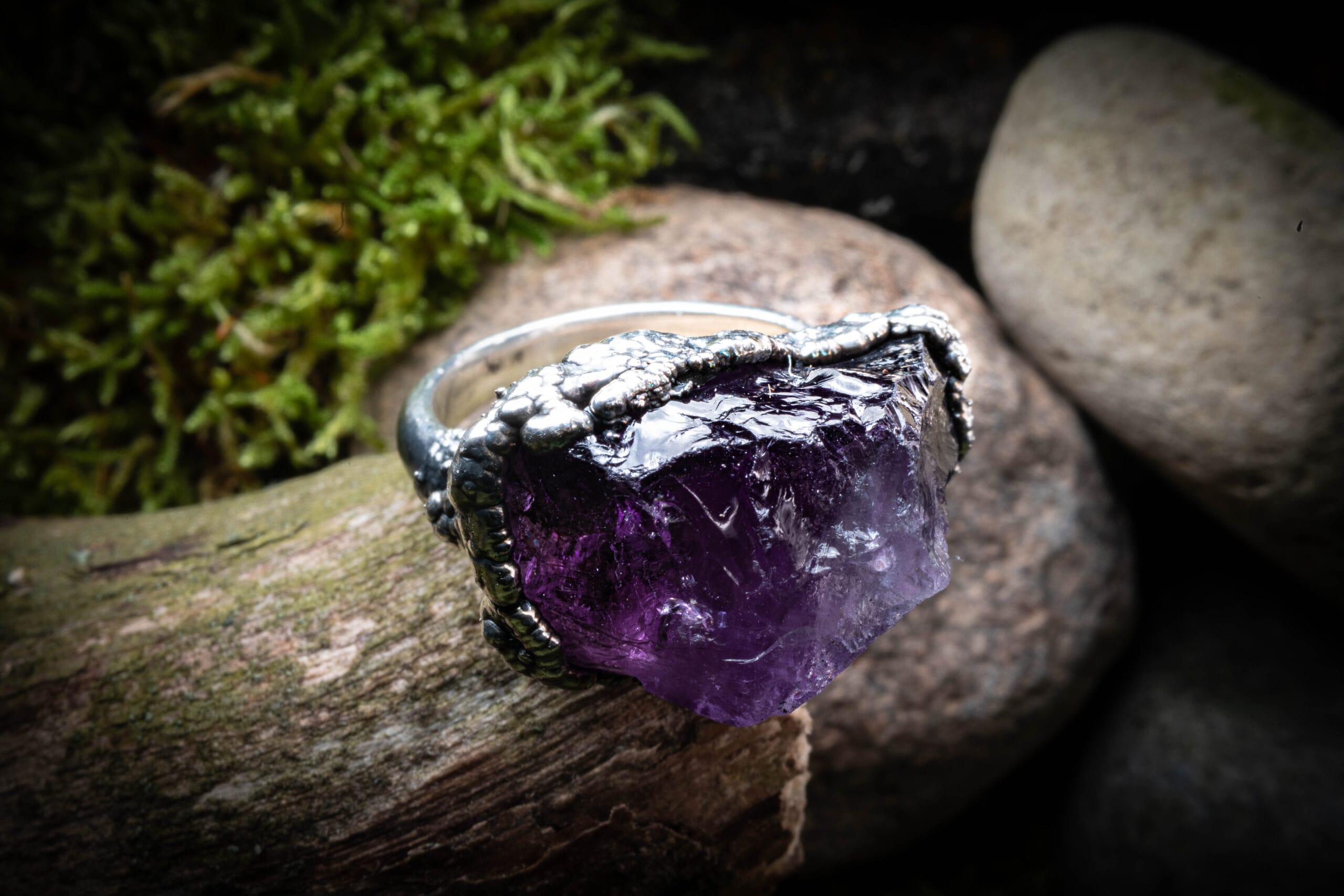 ⚜︎ Vienetinis juodinto sidabro žiedas su ametisto akmeniu.⚜︎ Sukurta iš 925 ir 999 prabos sidabro, sveria 7,43 g.⚜︎ Žiedo dydis 16,8.⚜︎ Prabuota Latvijos prabavimo rūmuose.⚜ Papuošalas supakuotas medinėje rankų darbo dovanų dėžutėje.