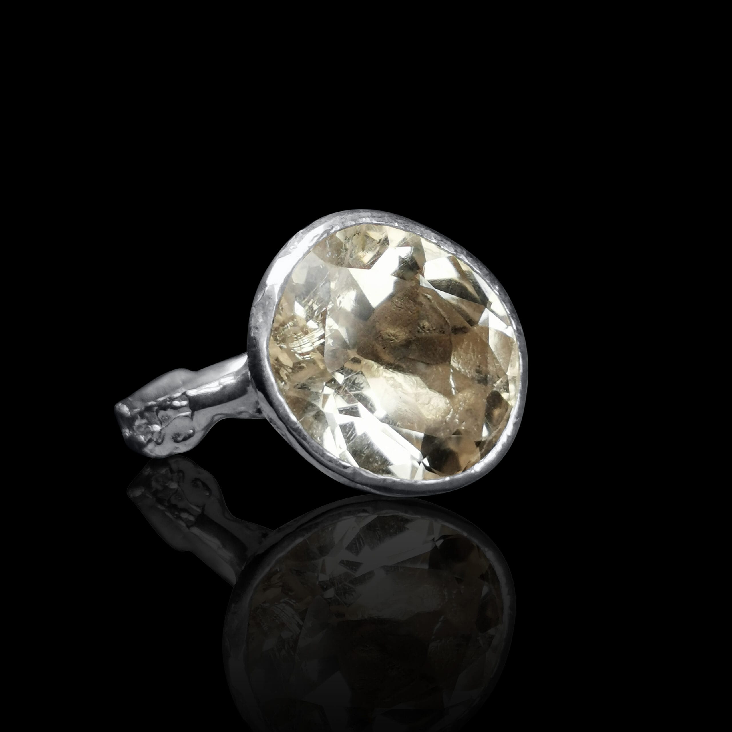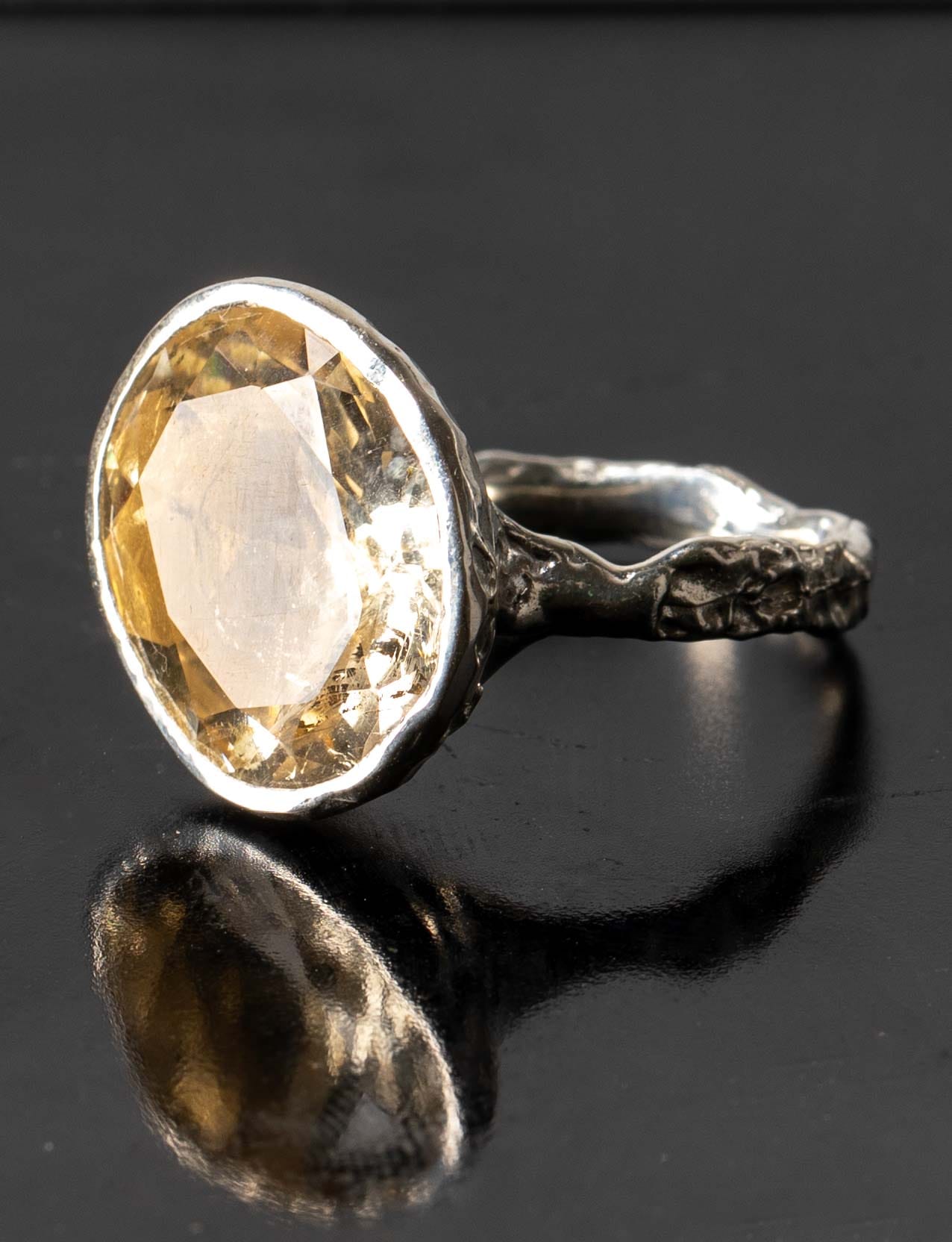 ⚜ Autorinis unikalaus dizaino rankų darbo žiedas.⚜ Žiedas su natūraliu citrino akmeniu, akmens dydis 20 x 17 mm.⚜ Prabuota Lietuvos prabavimo rūmuose, sidabro praba 925, svoris 10,35 g. ⚜ Žiedo dydis 18. ⚜ Papuošalas parduodamas supakuotas medinėje rankų darbo dėžutėje.