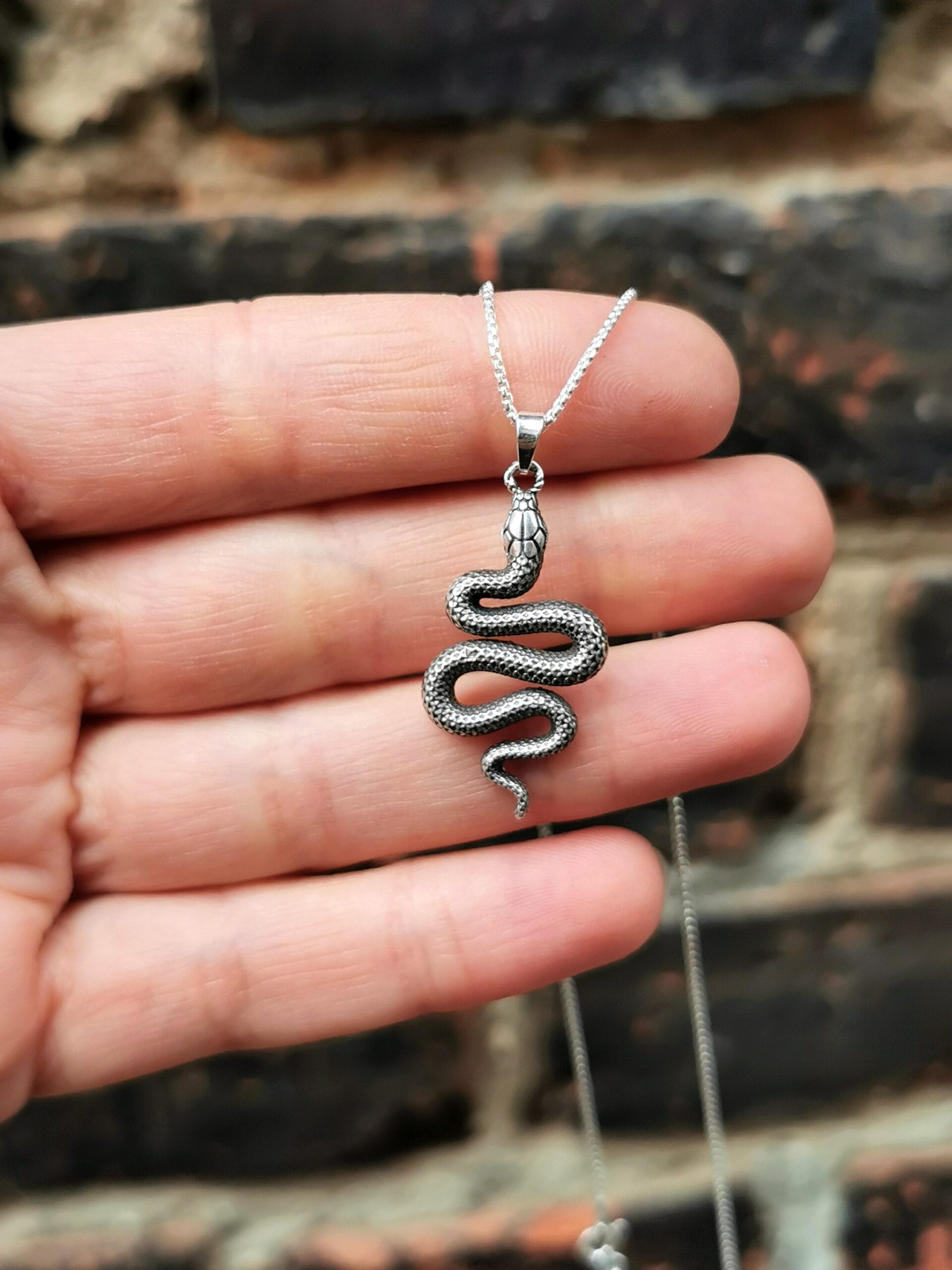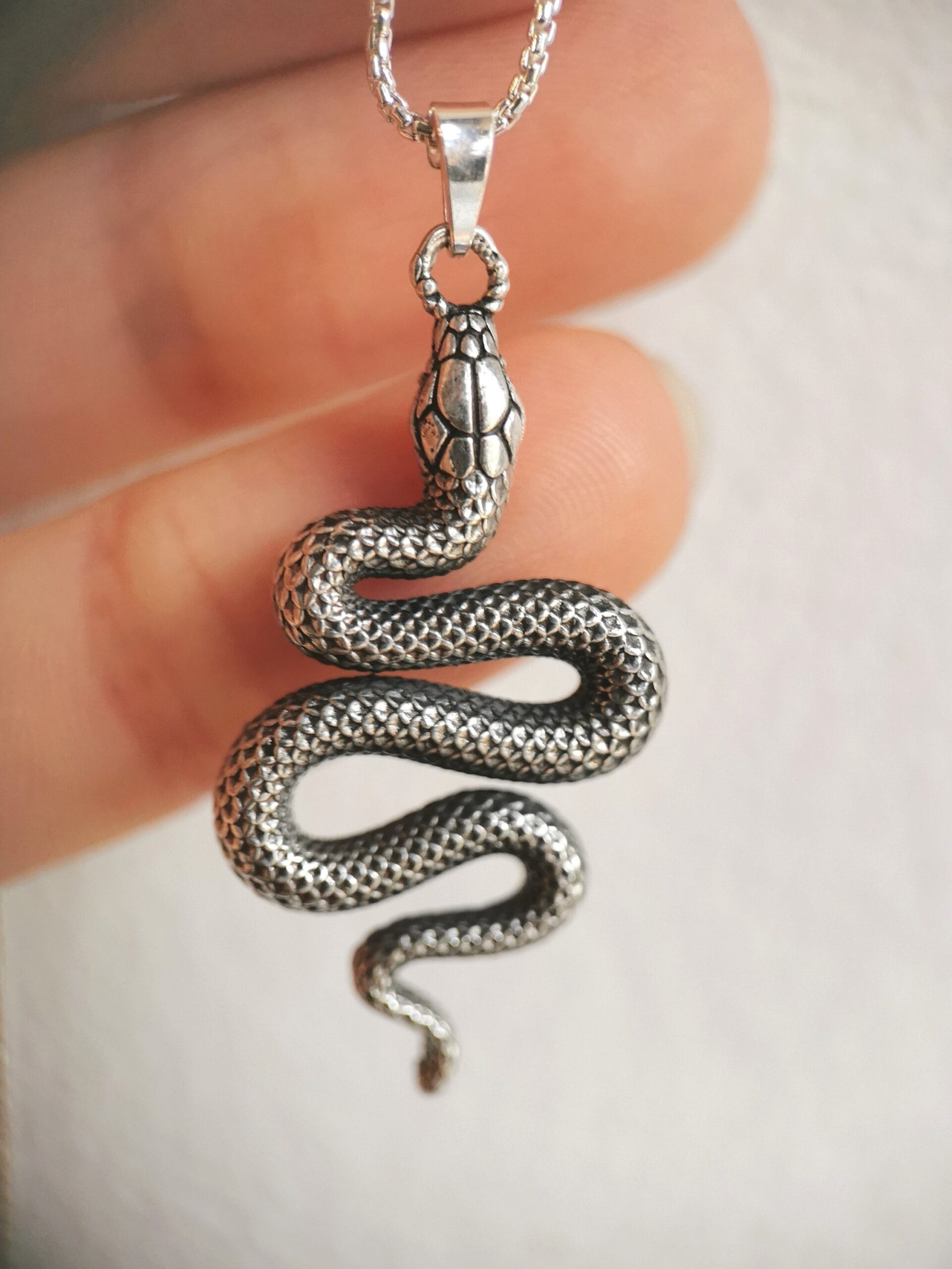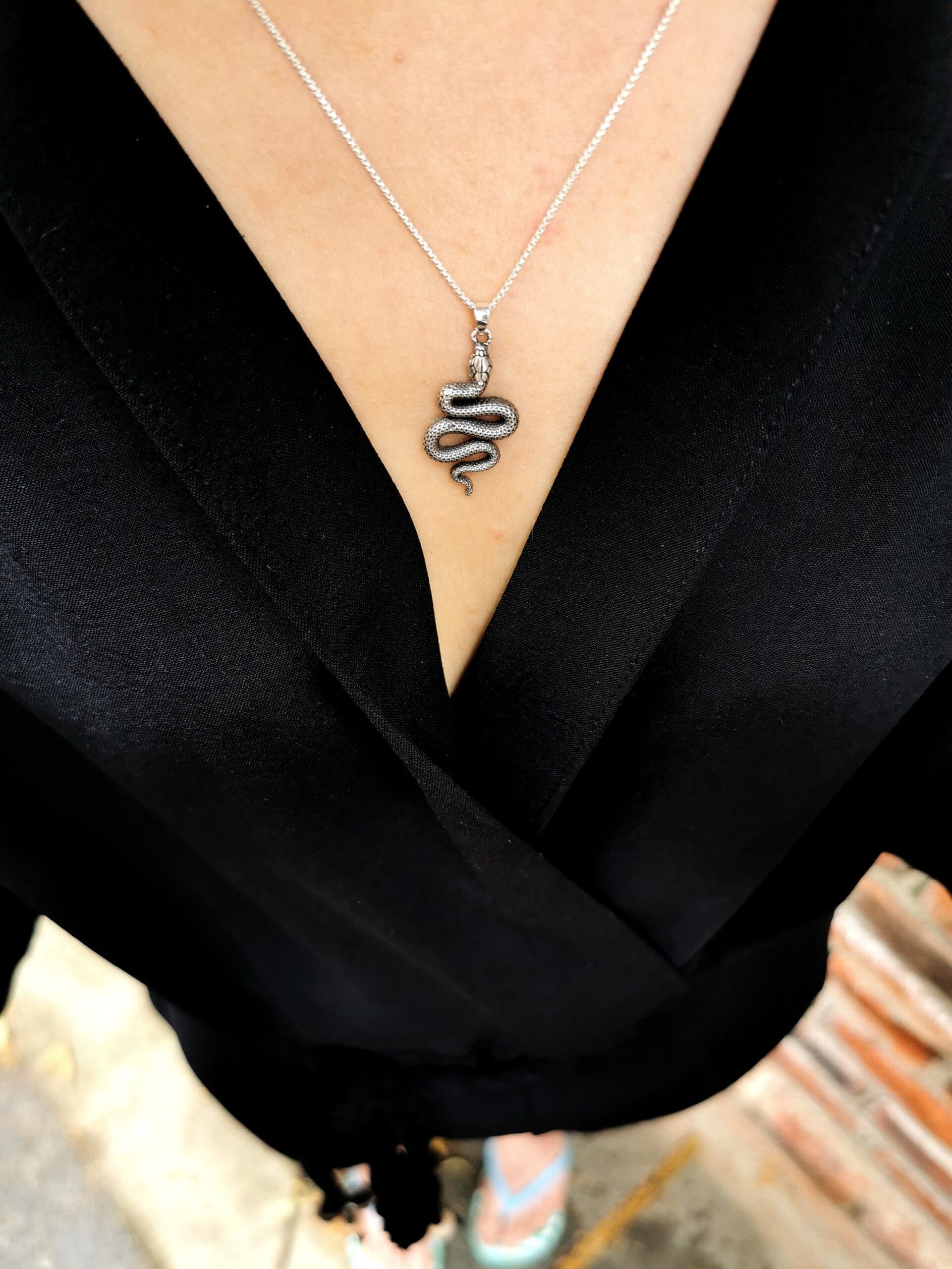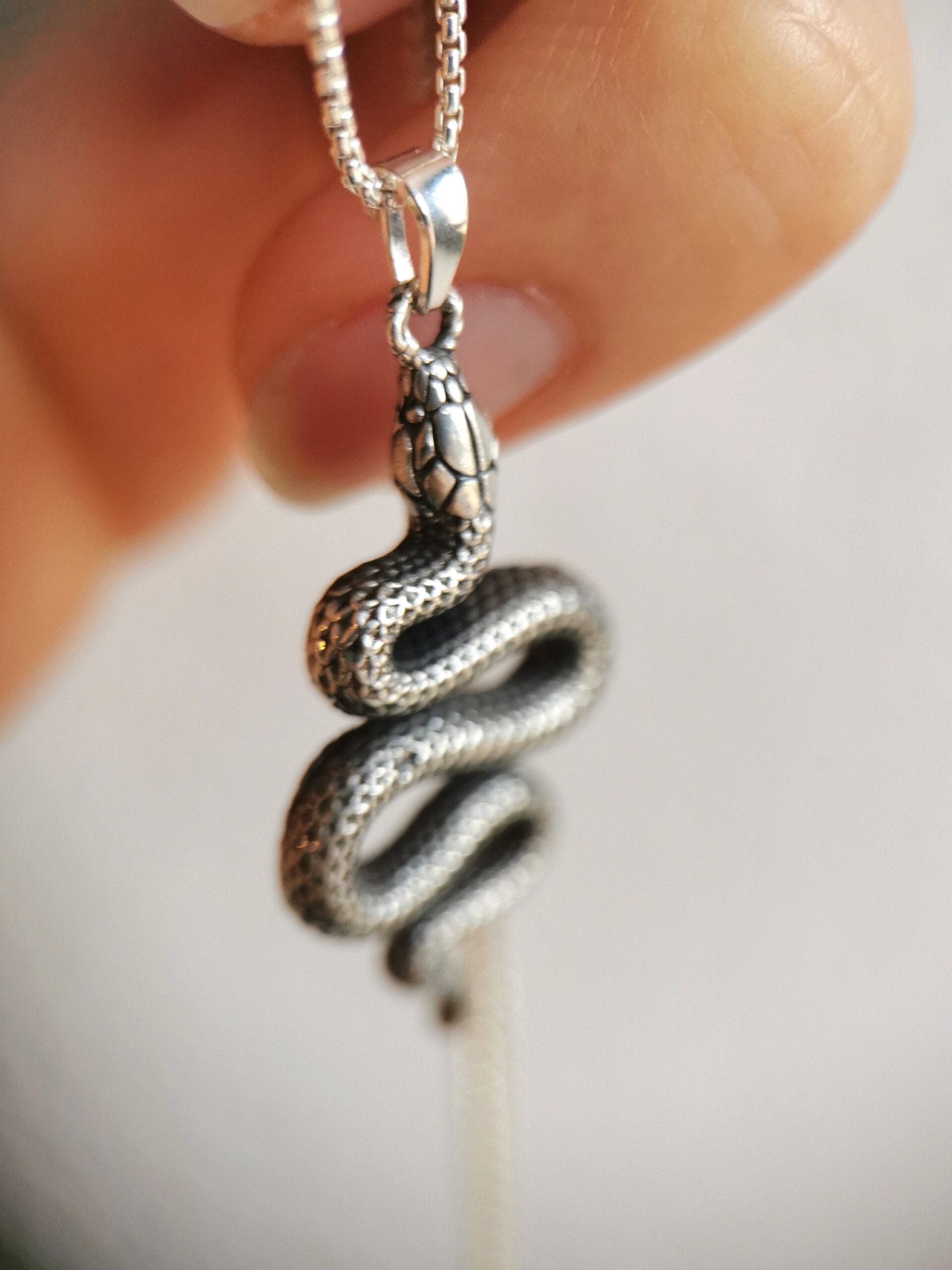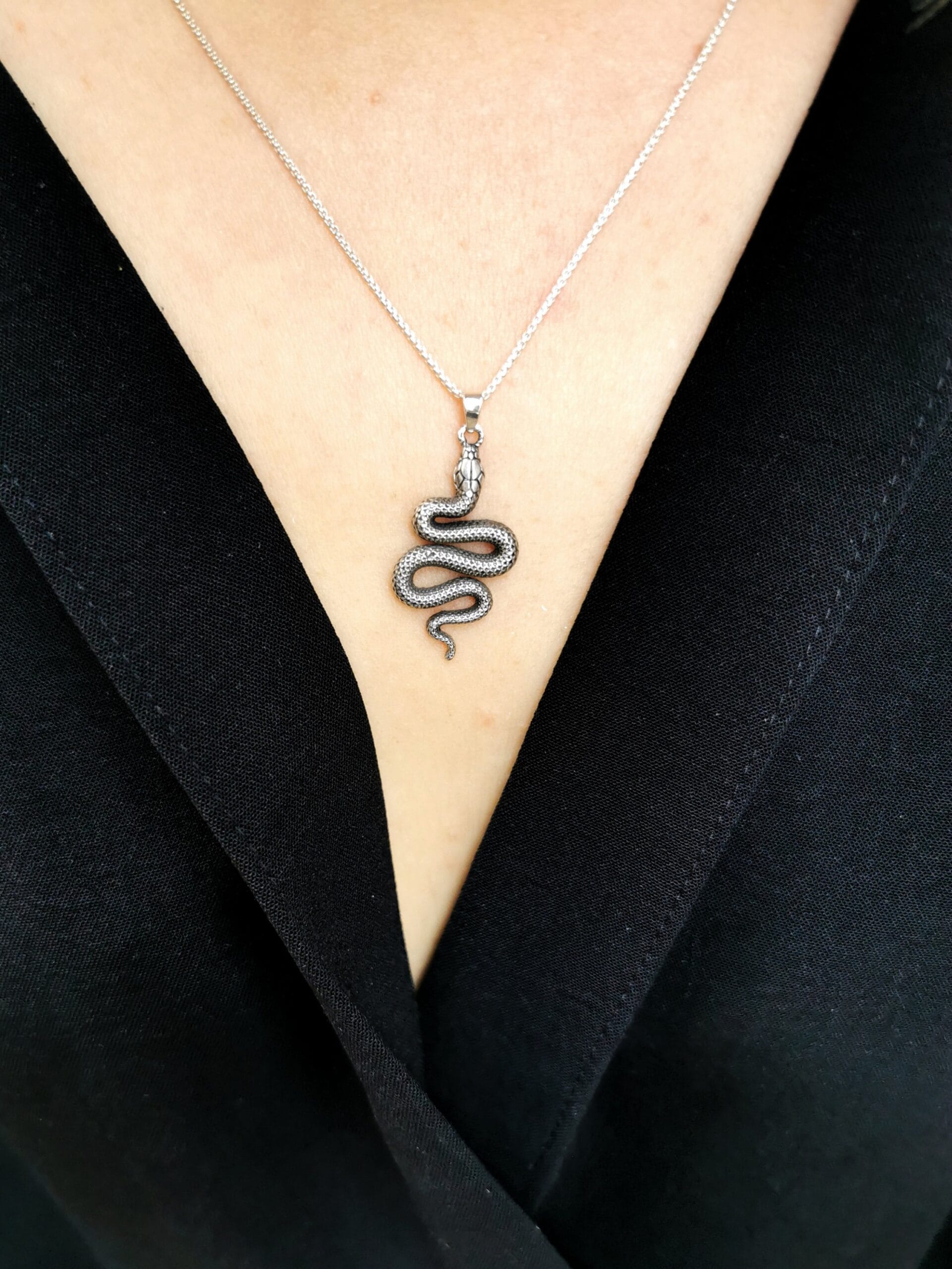 ⚜ Itin detalus tamsinto sidabro pakabukas su 35 mm dydžio žalčiu.