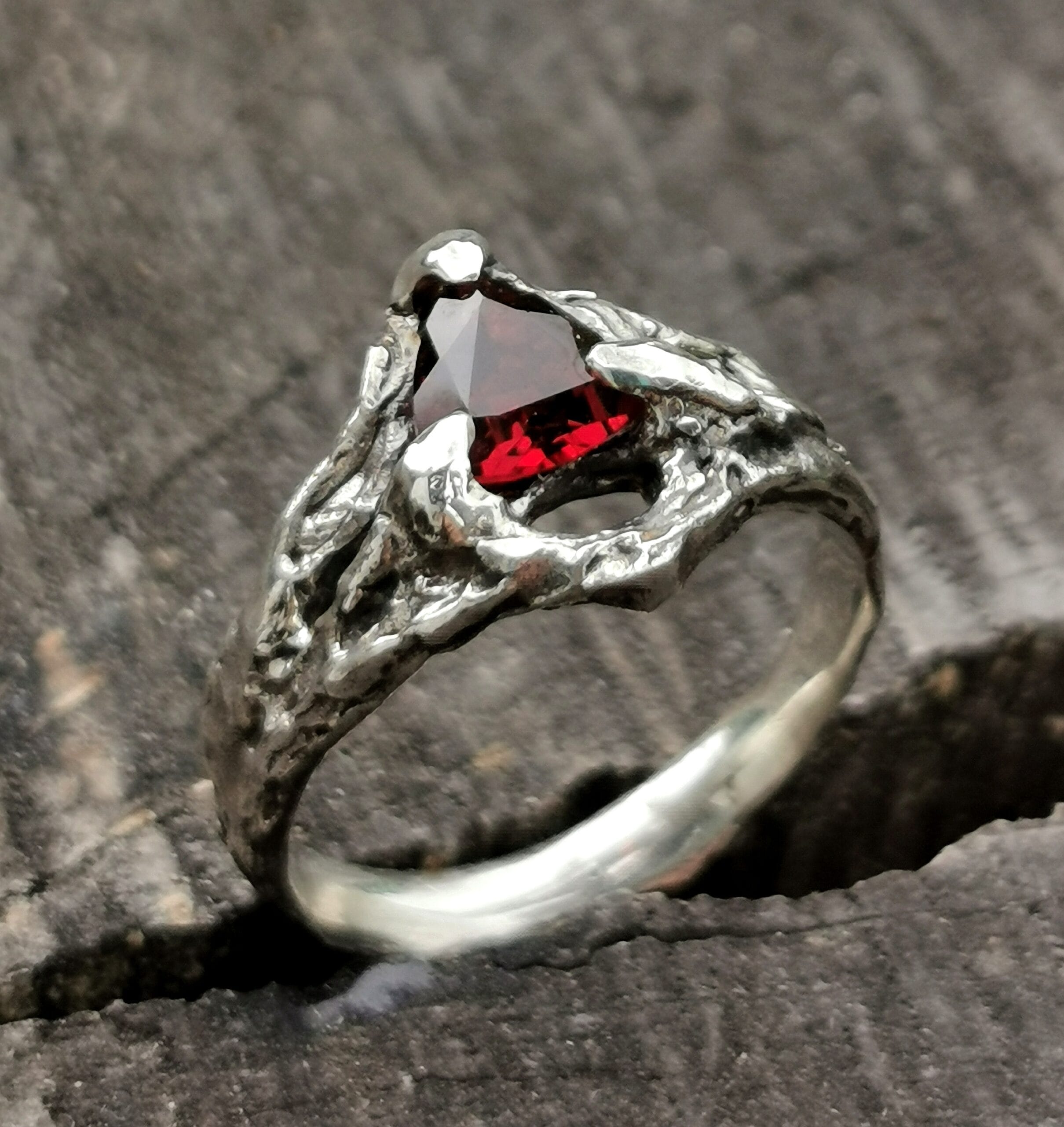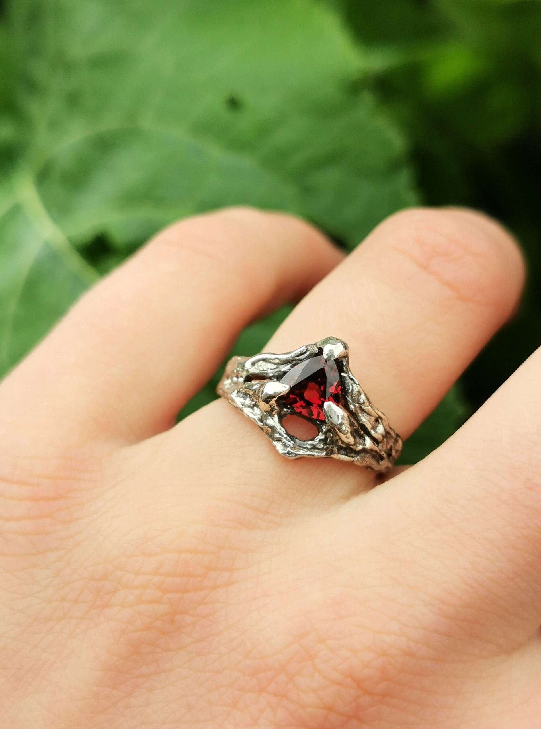 ⚜︎ Sidabro žiedas su granato akmeniu.⚜︎ Sukurta iš 925 prabos sidabro.⚜︎ Žiedo dydis 16,8 (esant poreikiui gali būti šiek tiek didinamas).⚜︎ Prabuota Latvijos prabavimo rūmuose.⚜ Papuošalas parduodamas supakuotas medinėje rankų darbo dovanų dėžutėje.