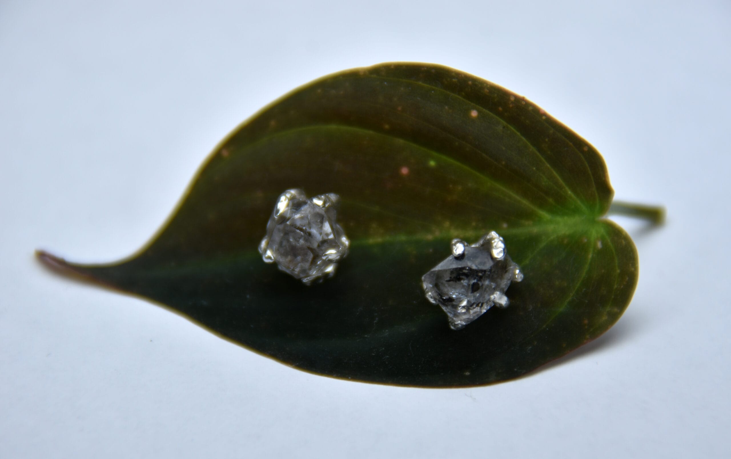 ⚜︎ Sidabriniai auskarai su herkimerio deimanto kristalais⚜︎ Auskarai bei jų užsegimai sukurti iš 925 prabos sidabro, prabuoti Lietuvos prabavimo rūmuose ⚜︎ Auskarų poros svoris 2,6 g⚜︎ Auskarų ilgis apie 1 cm⚜︎ Kiekviena auskarų pora šiek tiek skiriasi bei nėra identiška kaip nuotraukose, nes visi natūralūs kristalai skirtingi savo forma, dydžiu bei svoriu
