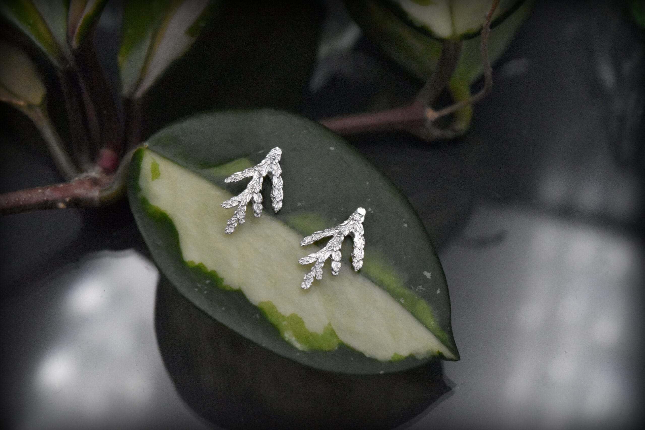 ⚜︎ Sidabriniai auskarai sukurti pasitelkiant tikro augalo formas⚜︎ Auskarai bei jų užsegimai sukurti iš 925 prabos sidabro⚜︎ Auskarų poros svoris 1.08 g⚜︎ Auskarų ilgis 1,5 cm⚜︎Minimalistiniai, patogūs ir tinkami kasdieniniam nešiojimui⚜︎Prabuoti prabavimo rūmuose