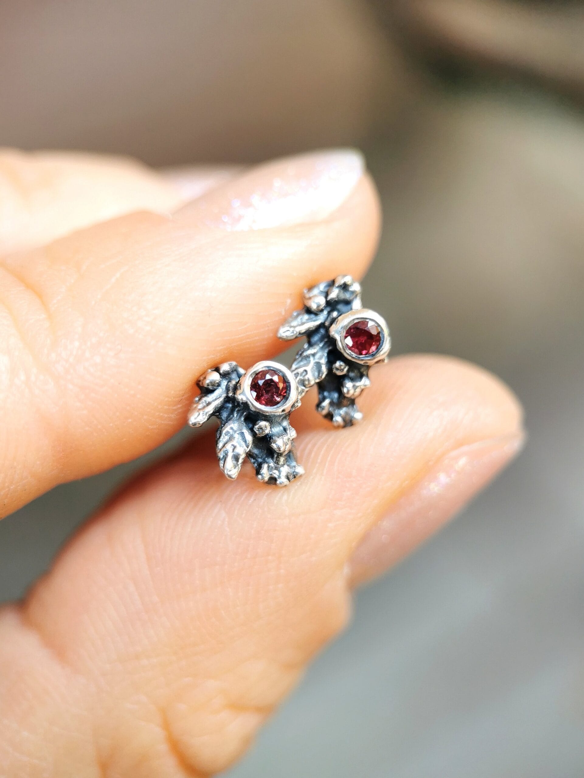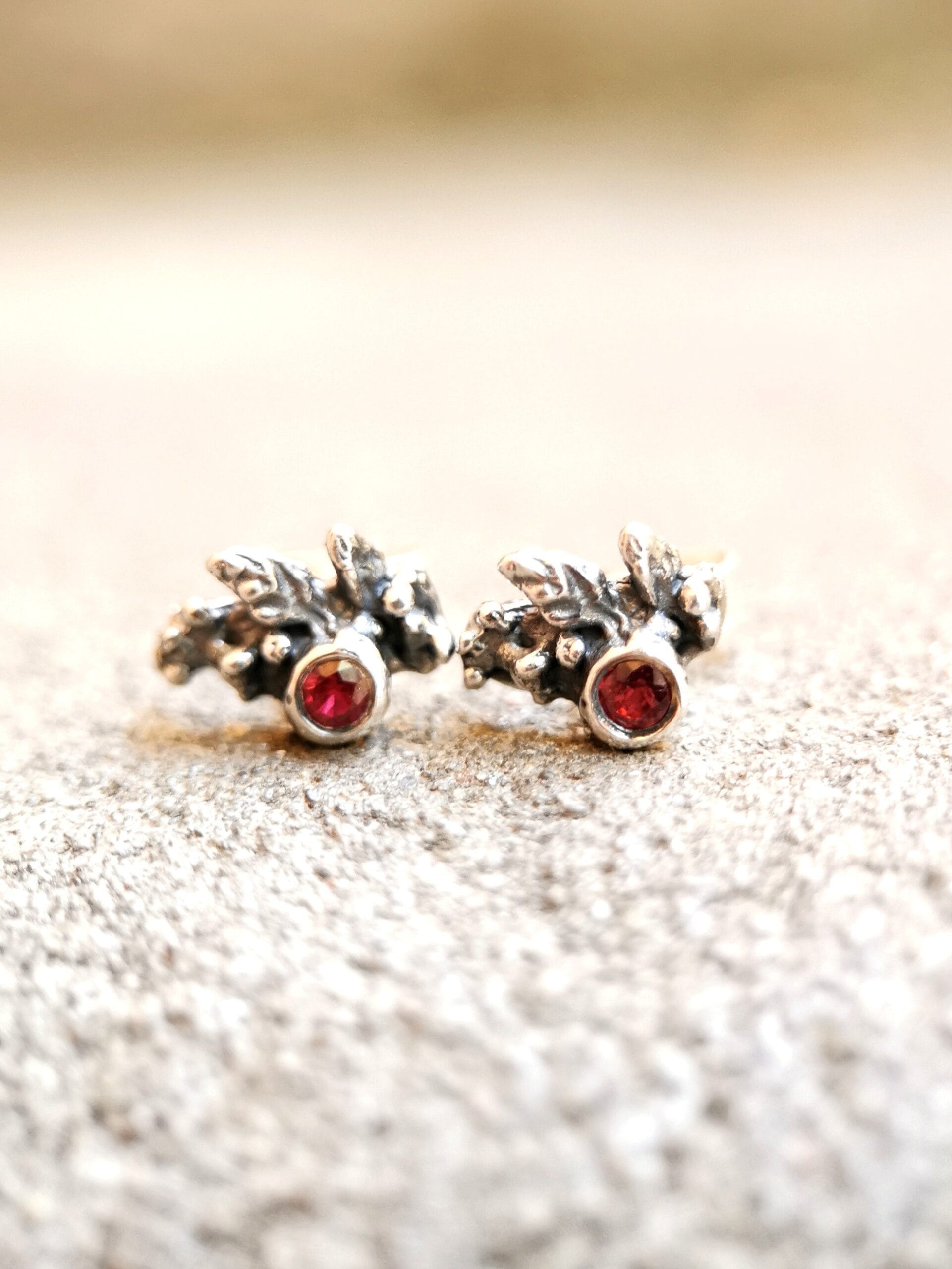 ⚜︎ Auskarai inkrustuoti natūraliais rubinų akmenimis.