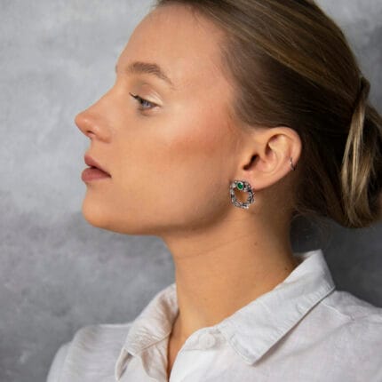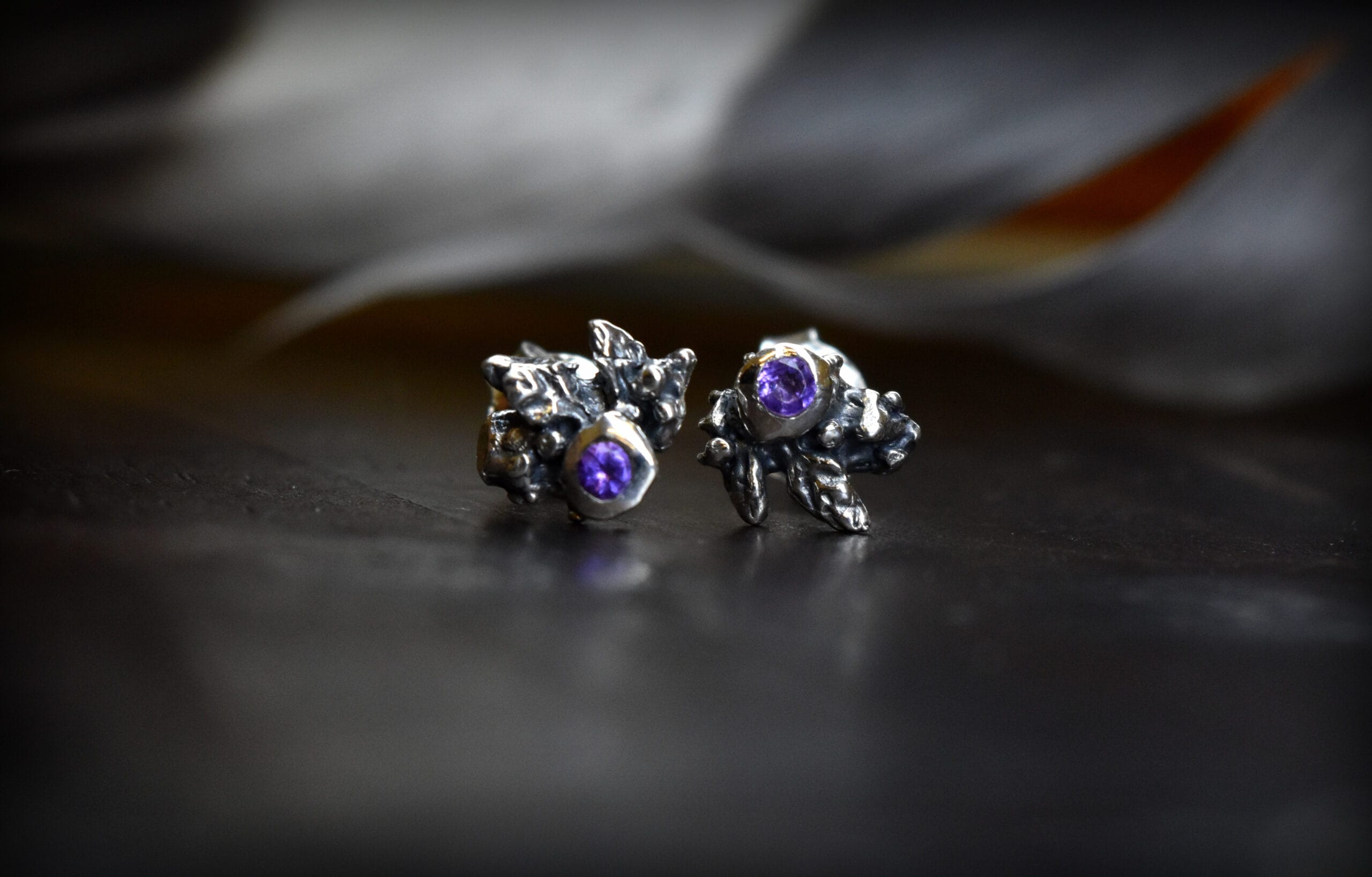 ⚜︎ Auskarai inkrustuoti ametisto akmenimis.⚜︎ Tinkami nešioti kasdien, nedideli.⚜︎ Sidabras specialiai paveiktas, taip išgaunant tamsesnius sidabro atspalvius.⚜︎ Auskarai bei jų užsegimai sukurti iš 925 prabos sidabro, sveria 1,47 g.⚜ Prabuota Lietuvos prabavimo rūmuose.⚜ Papuošalas supakuotas dovanų maišelyje.