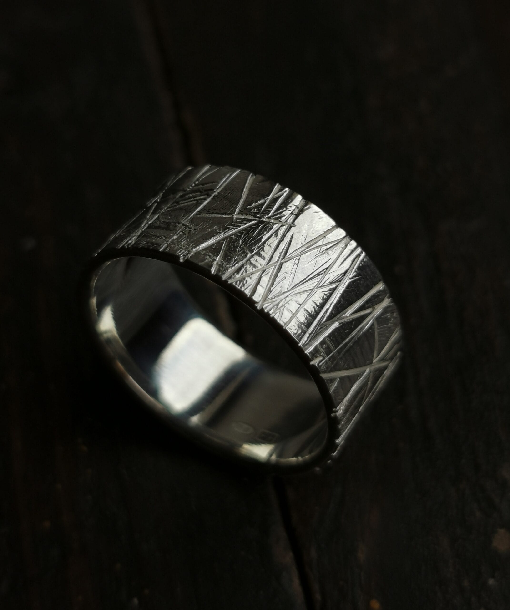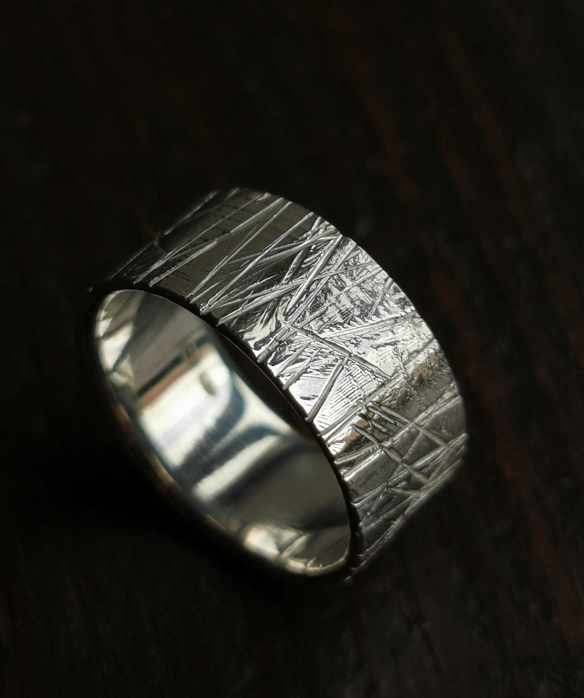 ⚜︎ Sidabrinis platus žiedas su įpjovų raštais. ⚜︎ Žiedas 19,5 dydžio. ⚜︎ Sukurtas iš 925 prabos sidabro. ⚜︎ Žiedo svoris 8,1 g, plotis 9,7. ⚜︎ Prabuota Latvijos prabavimo rūmuose.⚜ Papuošalas parduodamas supakuotas medinėje rankų darbo dovanų dėžutėje.
