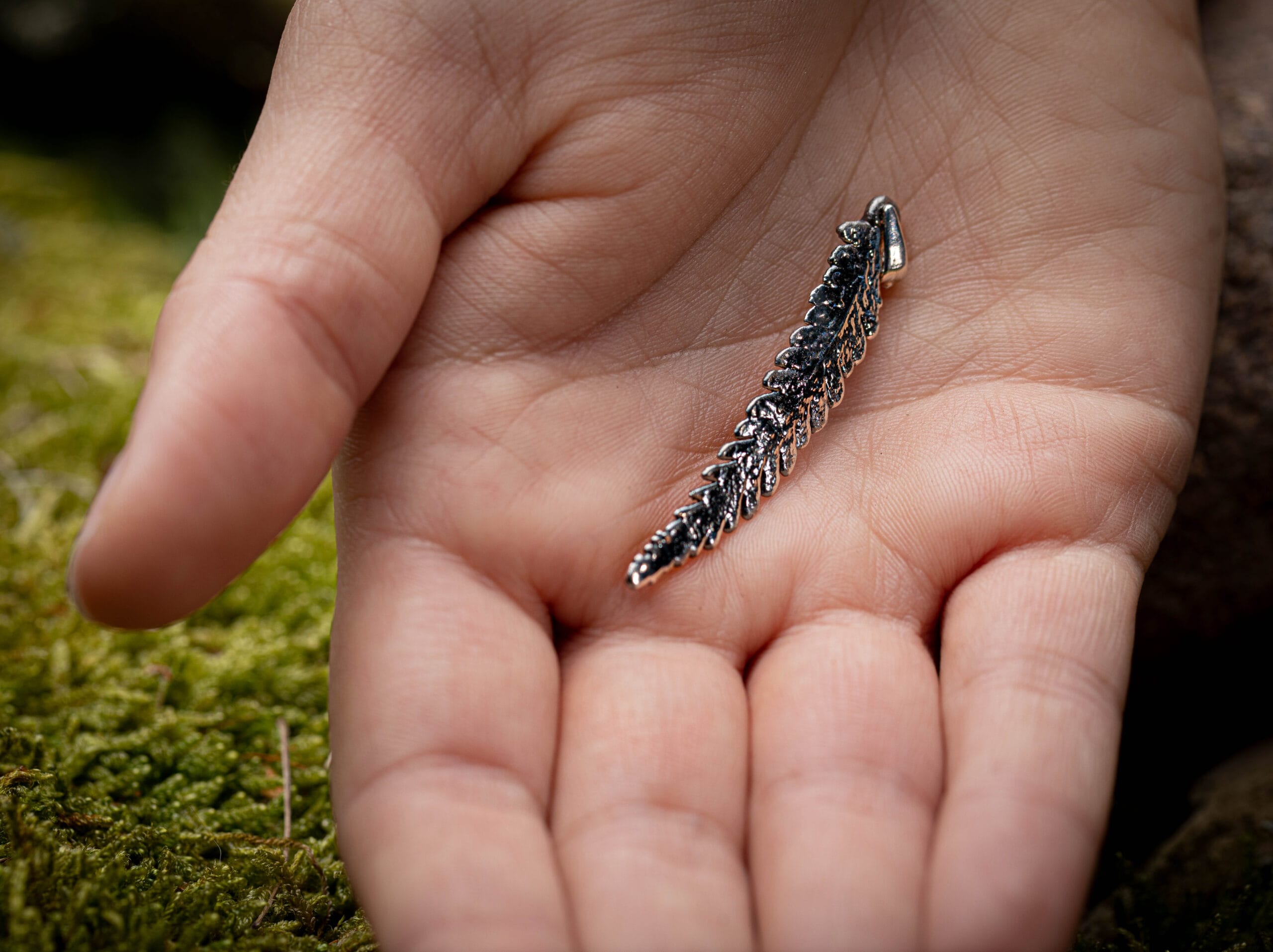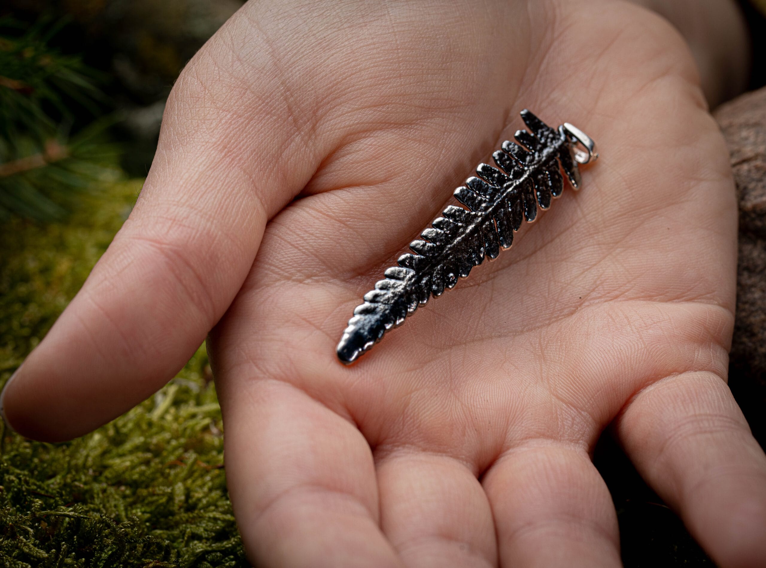 ⚜︎ Pakabukas sukurtas iš tikro paparčio lapo. Tai yra tikras augalas, elektrolizės būdu padengtas variu, tada 999 prabos grynumo sidabru.⚜︎ Sidabras specialiai paveiktas, taip išgaunant tamsesnius sidabro atspalvius.⚜︎ Papuošalas parduodamas kartu su smulkia sidabrine grandinėle arba be jos. Grandinėle sukurta iš 925 prabos sidabro, sveria 2,82 g. ⚜ Prabuota Lietuvos prabavimo rūmuose.⚜ Papuošalas atkeliauja supakuotas dovanų maišelyje.
