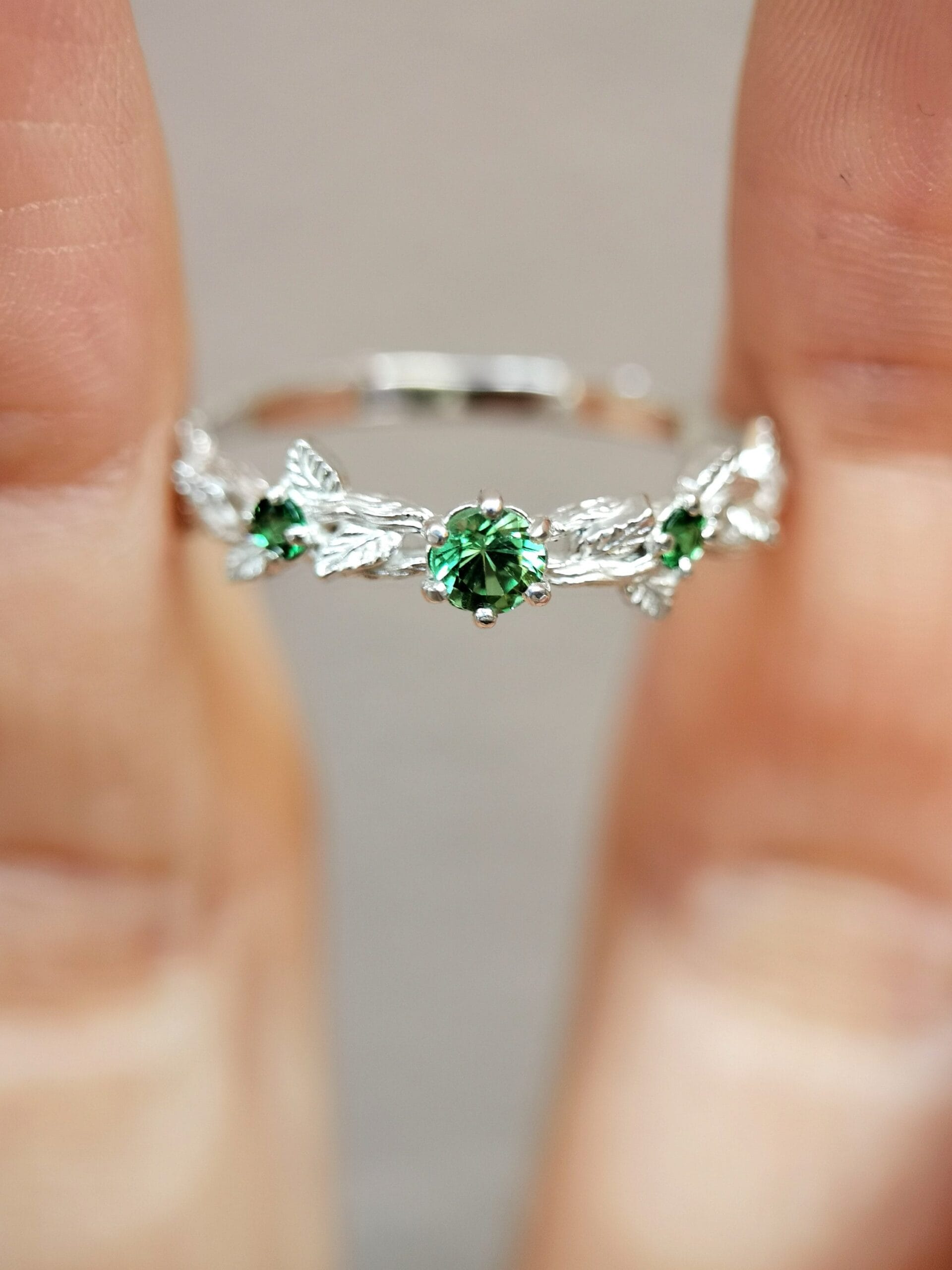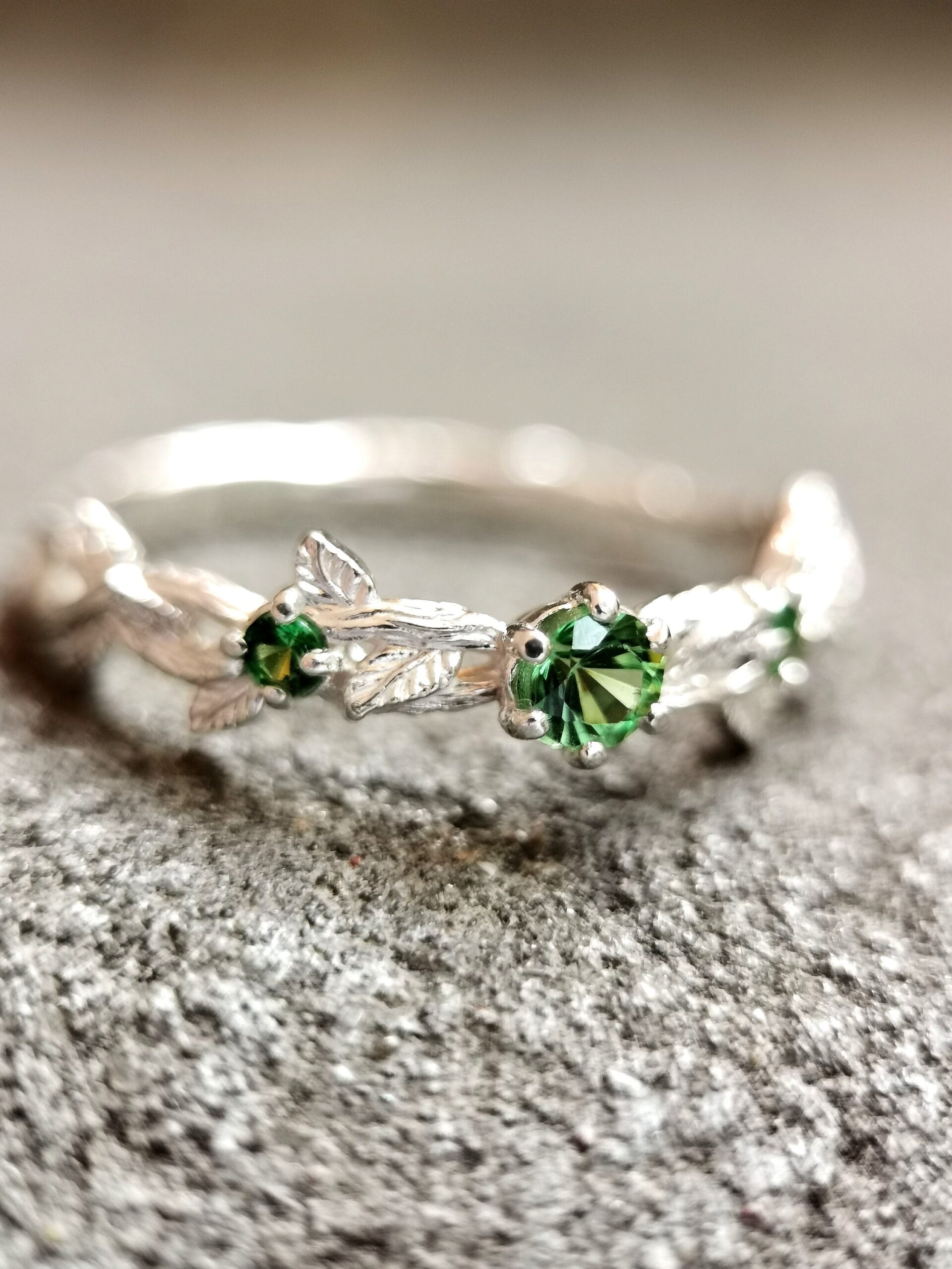 ⚜︎ Sukurta su 3 žalios spalvos tsavorito akmenimis.