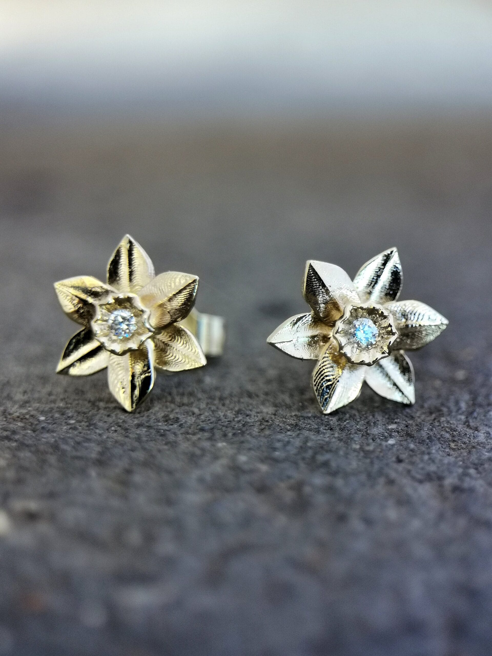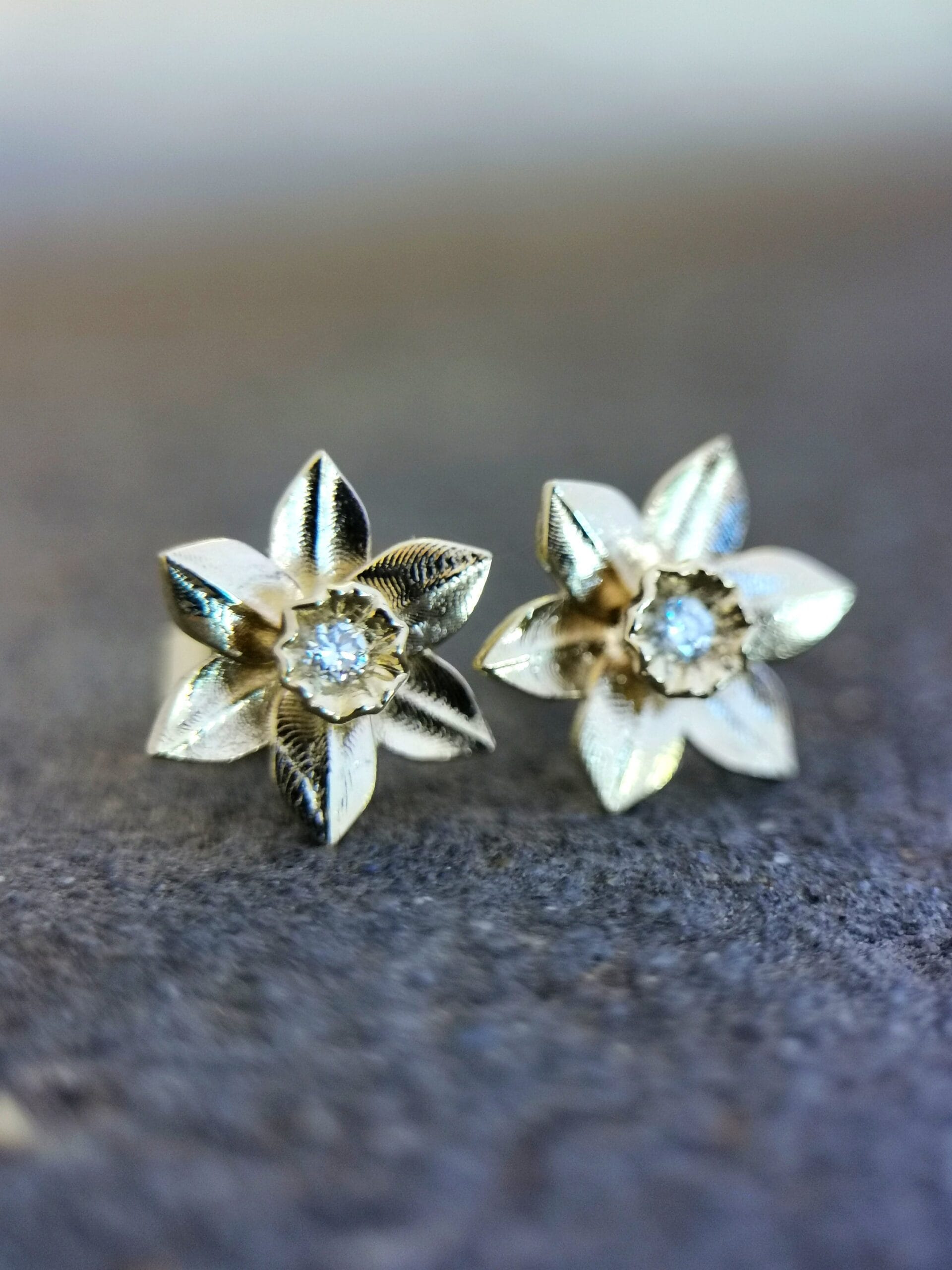 ⚜︎ Auskarai primena sumažintus tikrus narcizų žiedus.