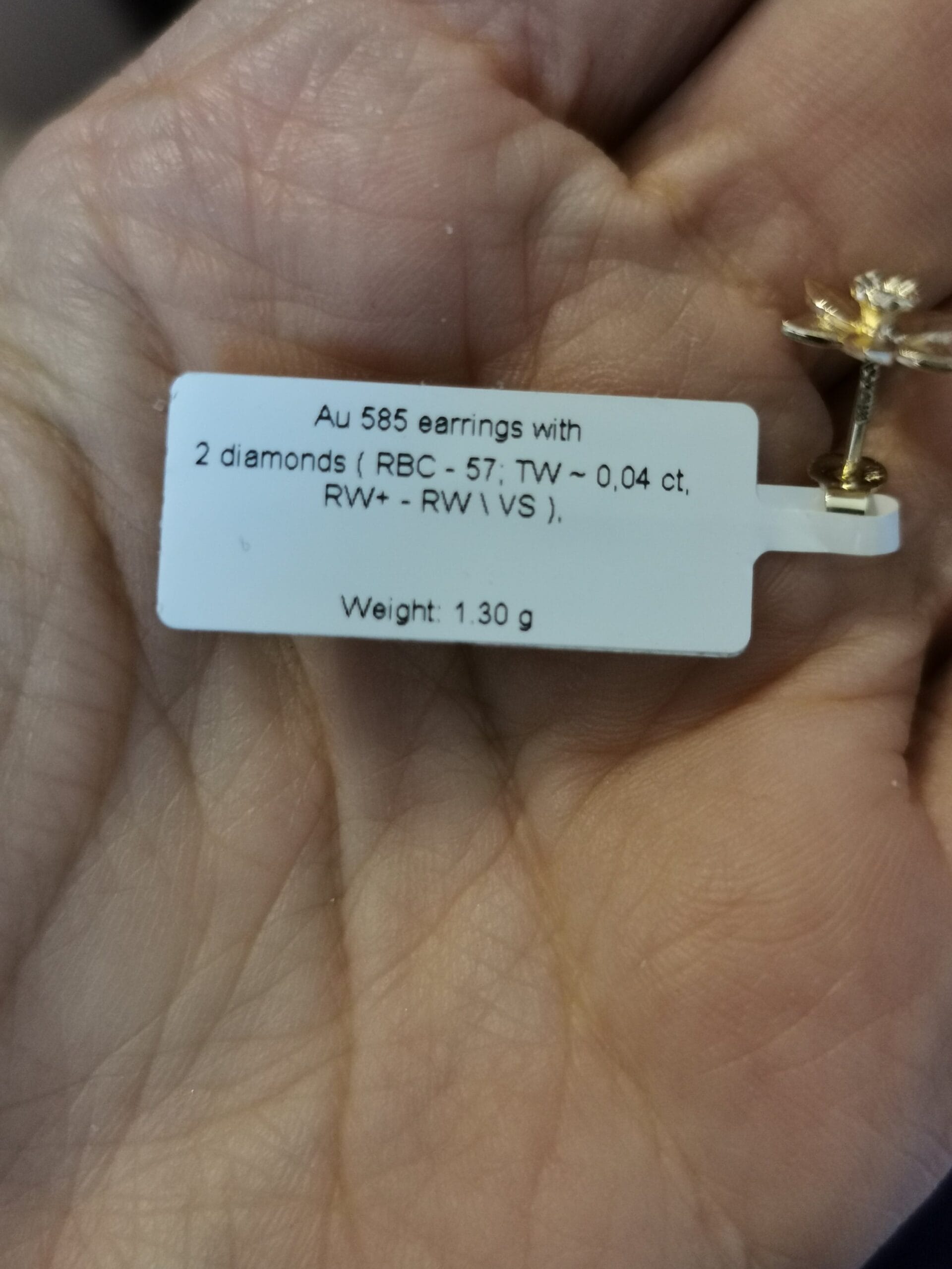 ⚜︎ Akmenys auskarų viduje – natūralūs deimantai. Jų dydis 0,04 ct. Brangakmenių autentiškumas patvirtintas prabavimo rūmų etiketėje, specifikacijos parašytos paskutinėje nuotraukoje.