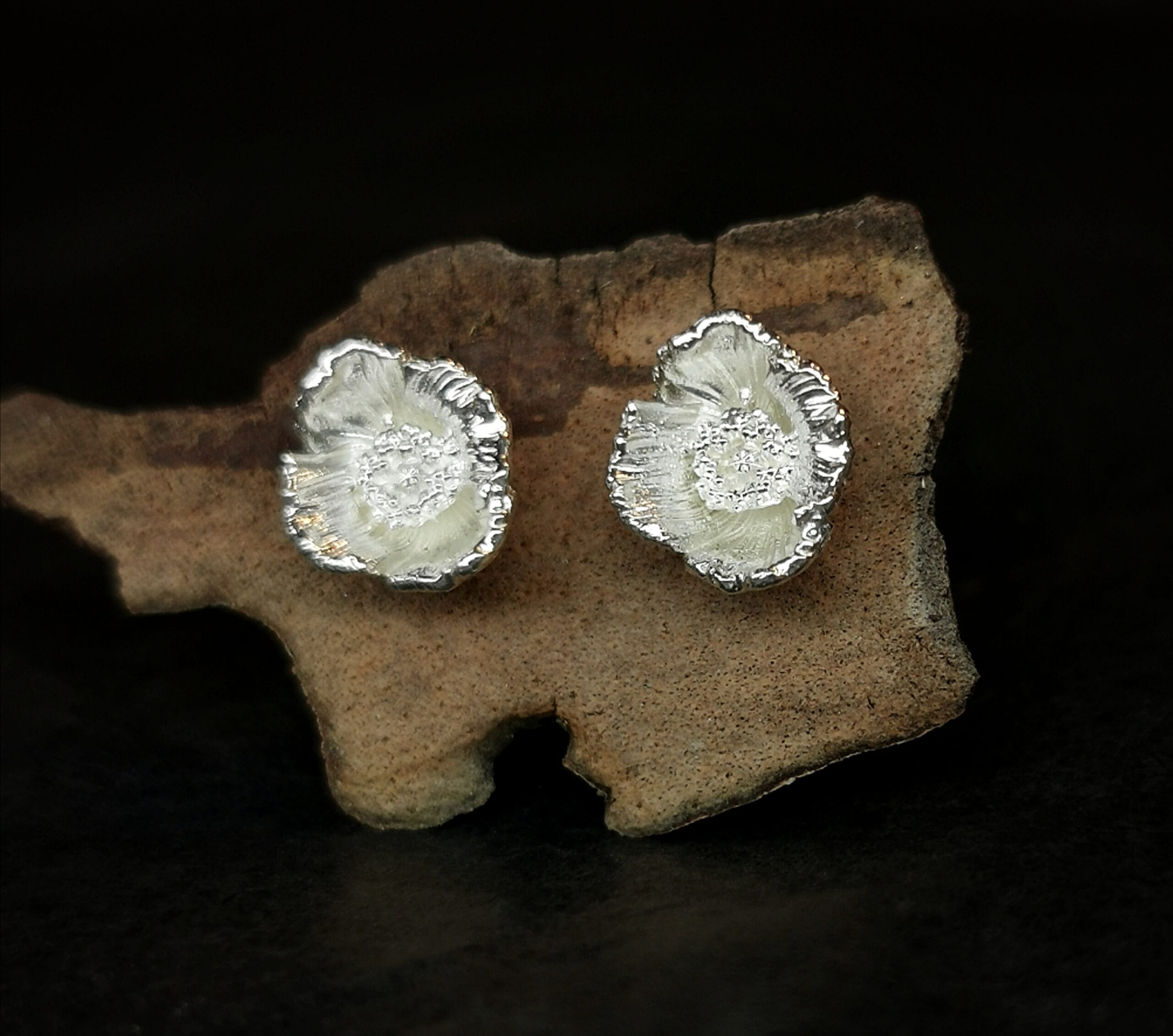 ⚜︎ Puikiai tinka kasdieniam nešiojimui, nedideli – auskaro ilgis apie 7 mm.⚜︎ Auskarai primena sumažintus tikros aguonos žiedus.⚜︎ Auskarai ir jų užsegimai pagaminti iš 925 prabos sidabro, auskarų svoris 0,94 g.⚜︎ Prabuoti Lietuvos prabavimo rūmuose.⚜︎ Papuošalas parduodamas dovanų dėžutėje – puikiai tinka dovanai.