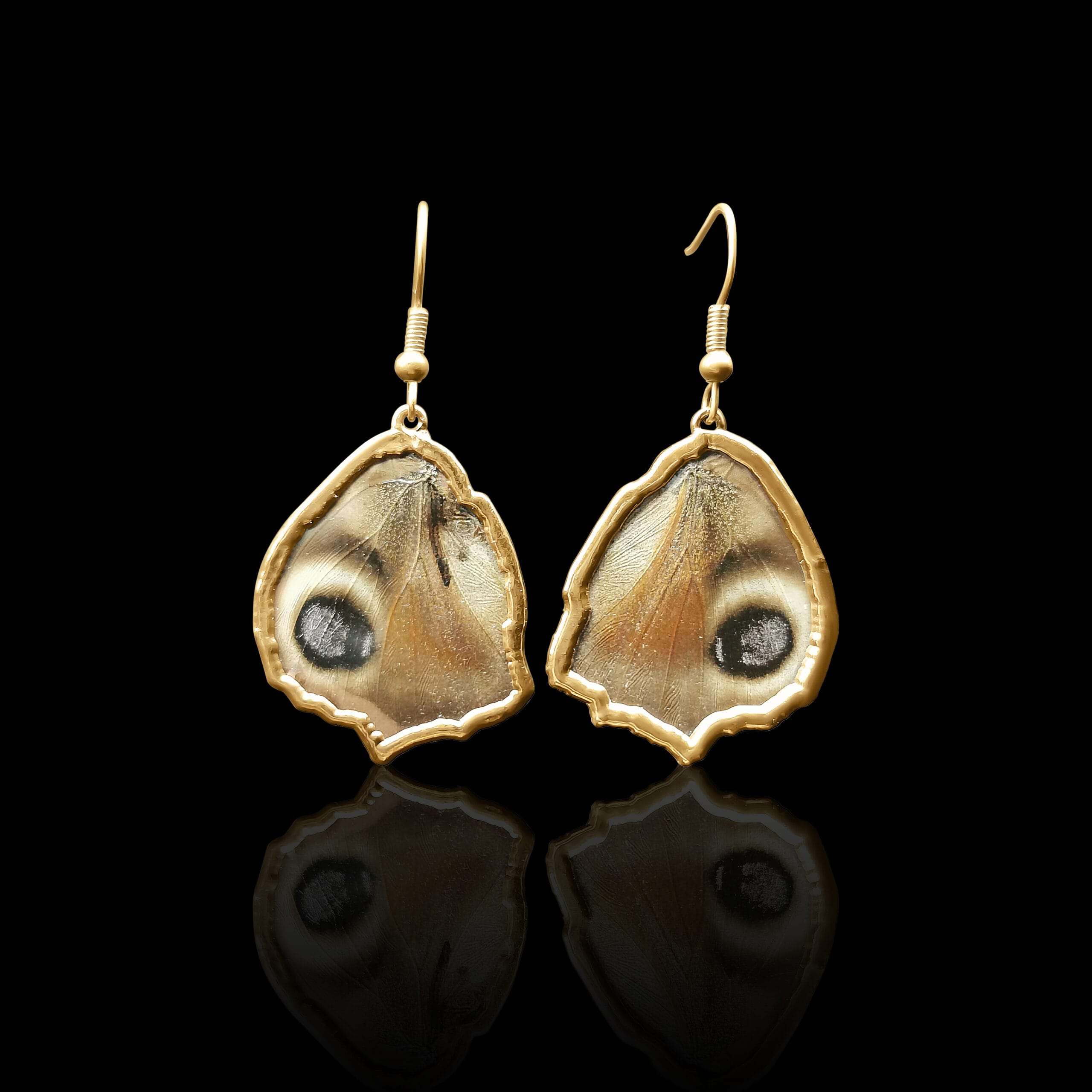 ⚜︎ Išskirtinio dizaino auskarai sukurti su tikrų drugelių sparnais (drugeliai panaudoti iš senų entomologinių kolekcijų).⚜︎ Auskarai lengvi (sveria 3,53 g) , įrėminti vario metale, užsegimai sukurti iš nerūdijančio plieno dengto variu. Auskarų ilgis su užsegimu 49 mm.⚜︎ Papuošalas parduodamas dovanų dėžutėje – puikiai tinka dovanai.