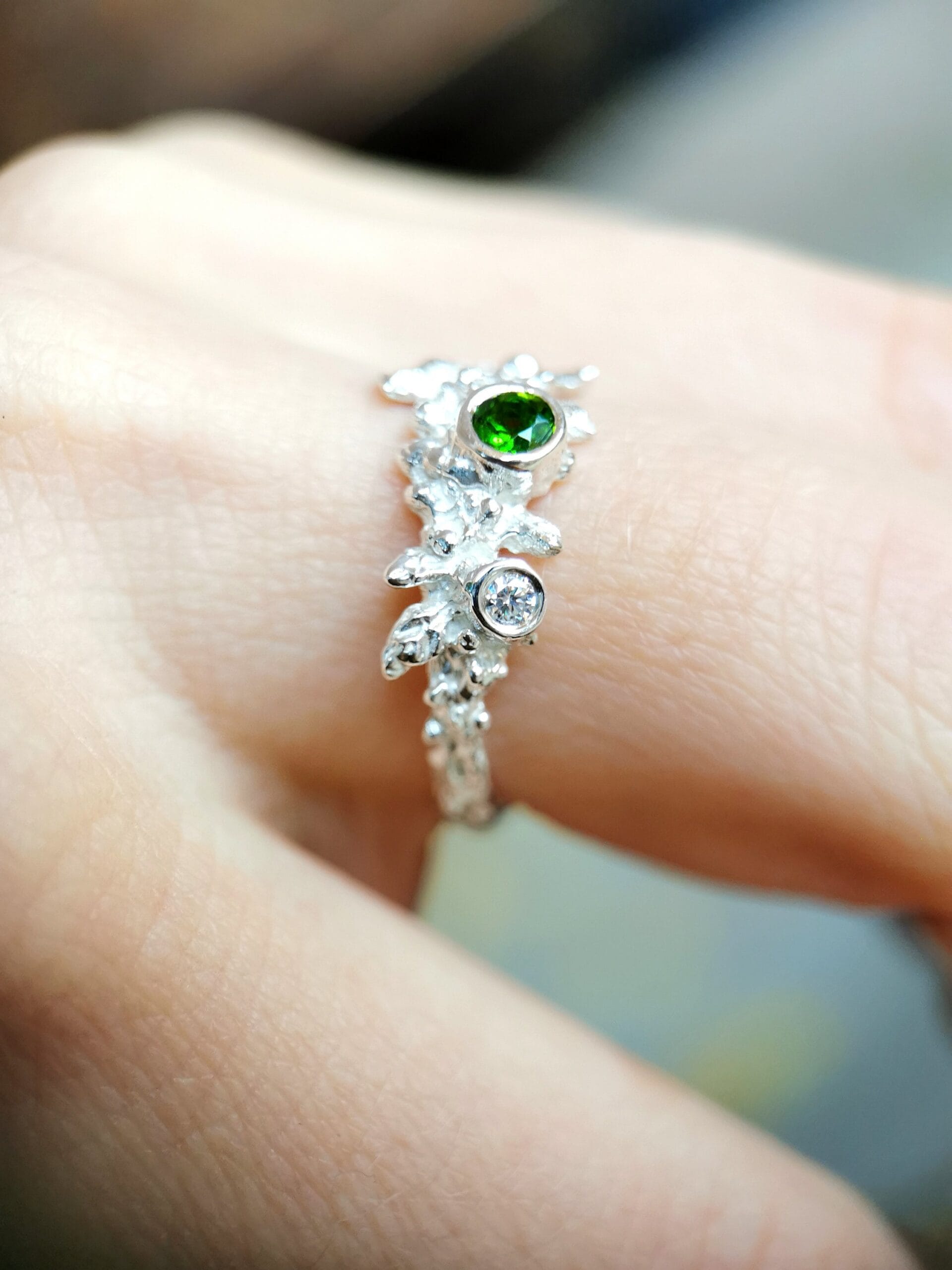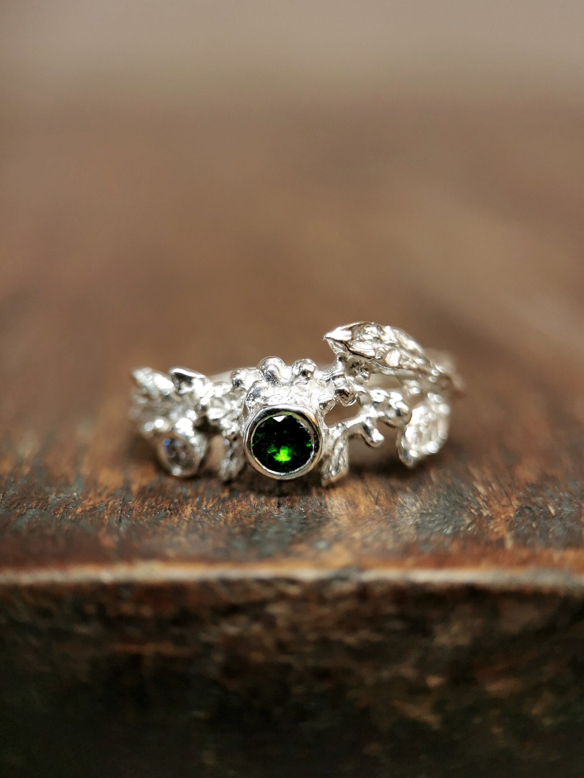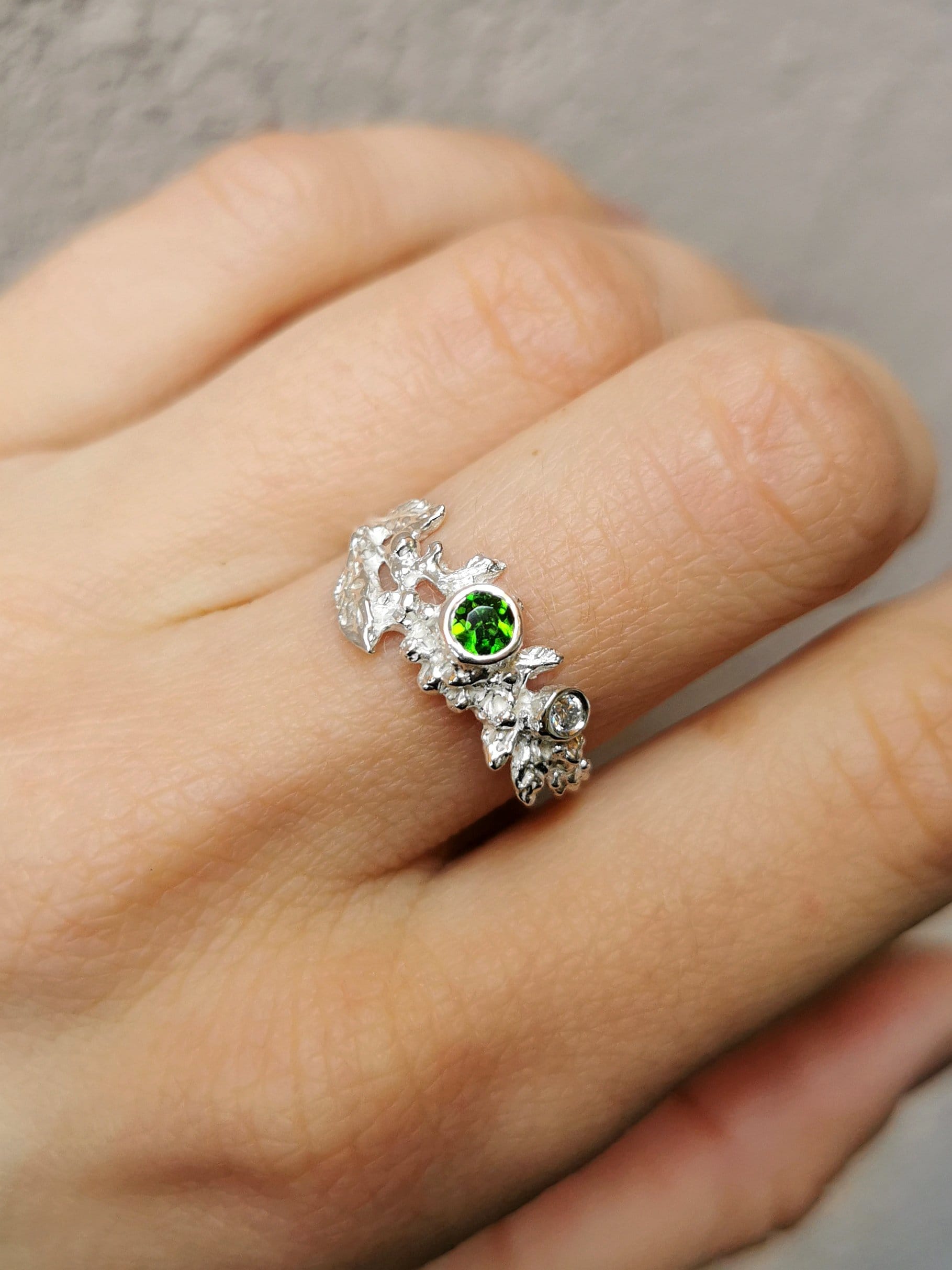 ⚜︎ Sukurta su chrom diopsido ir moisonito akmenimis.