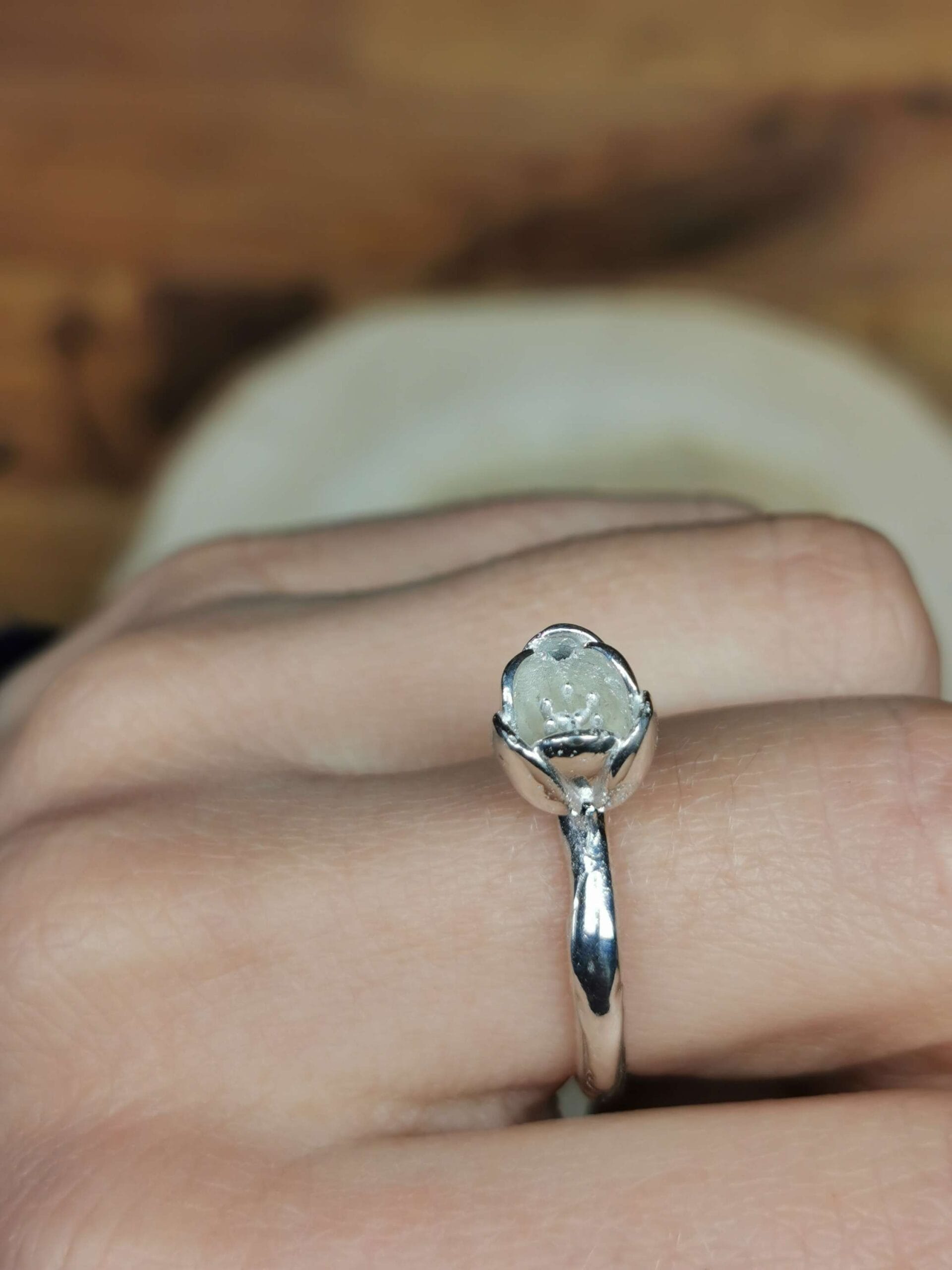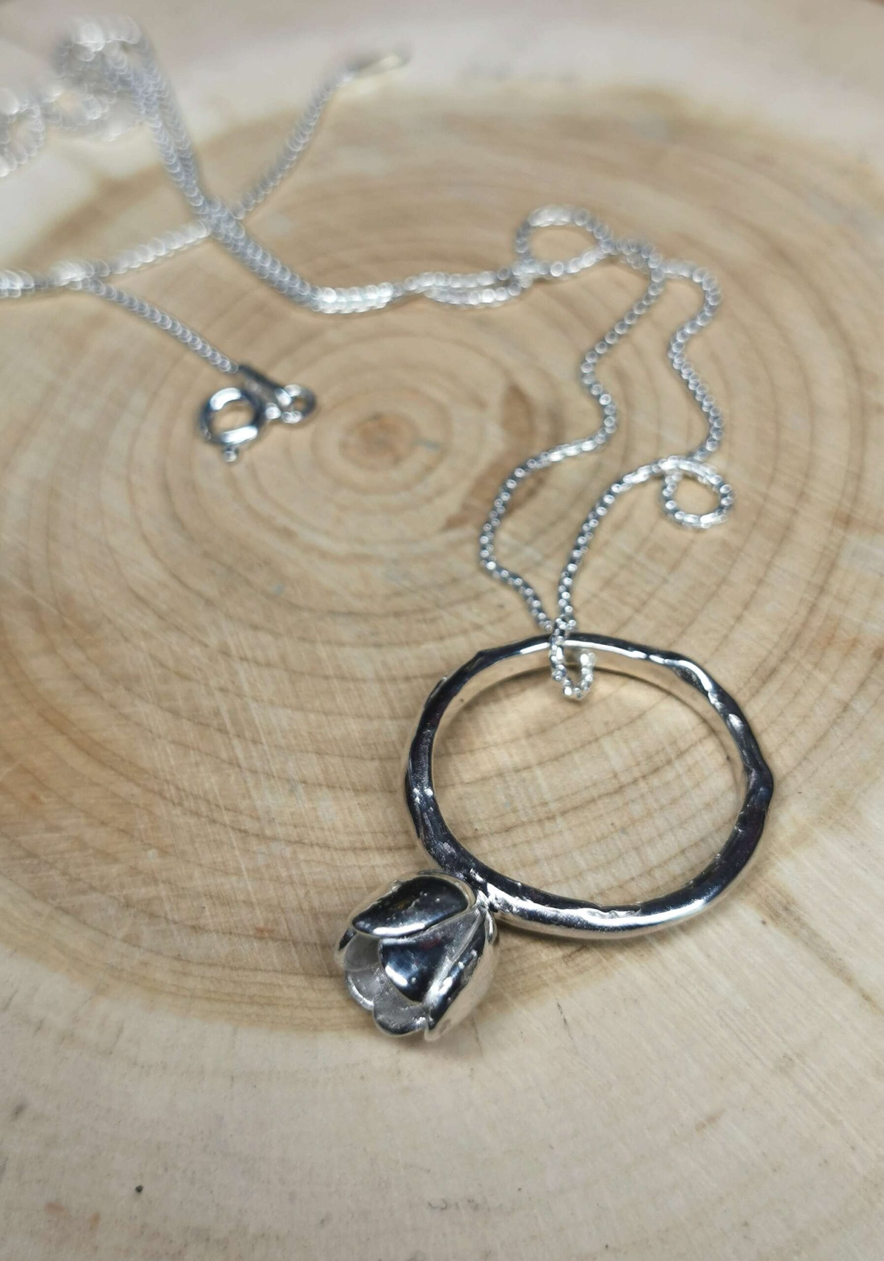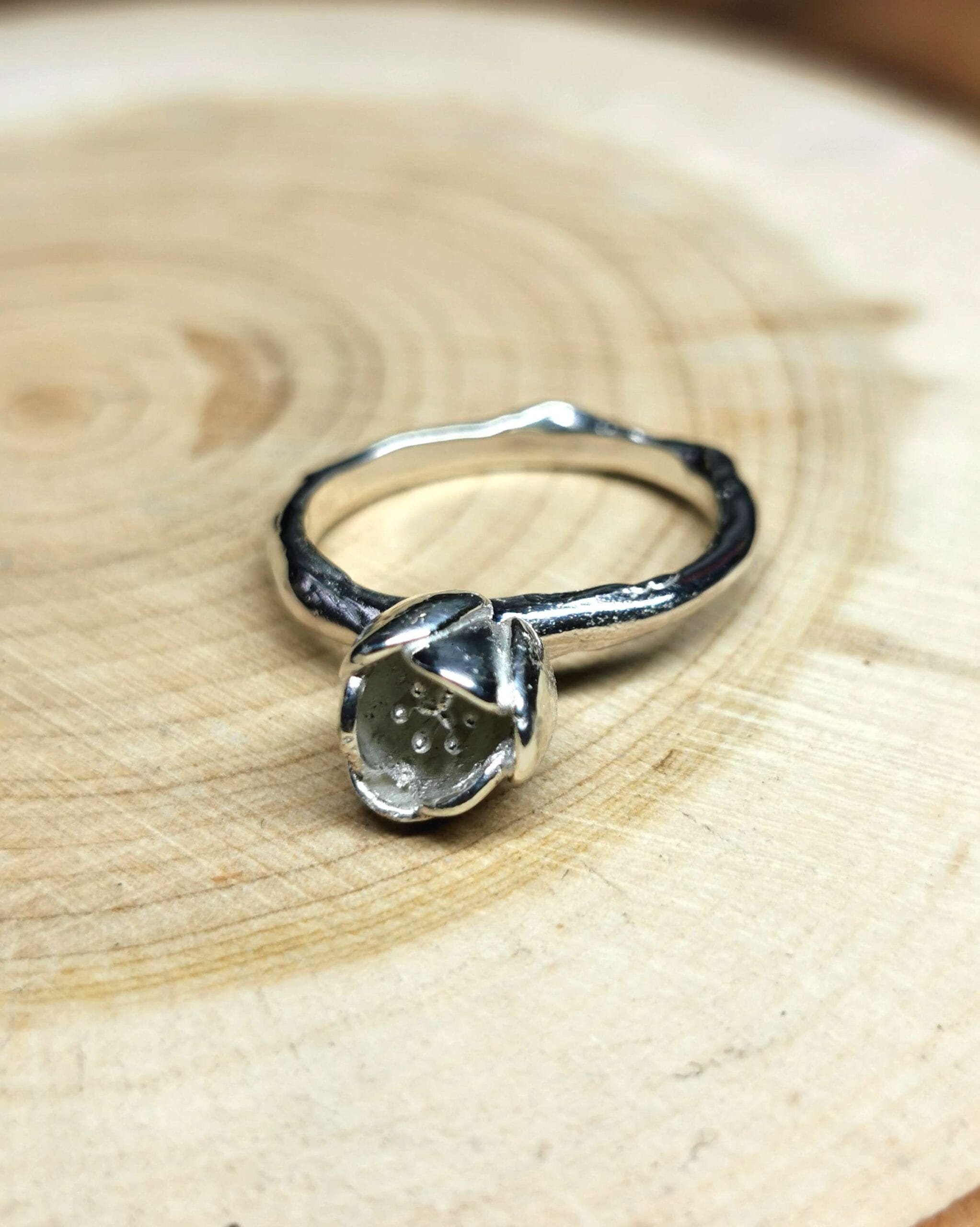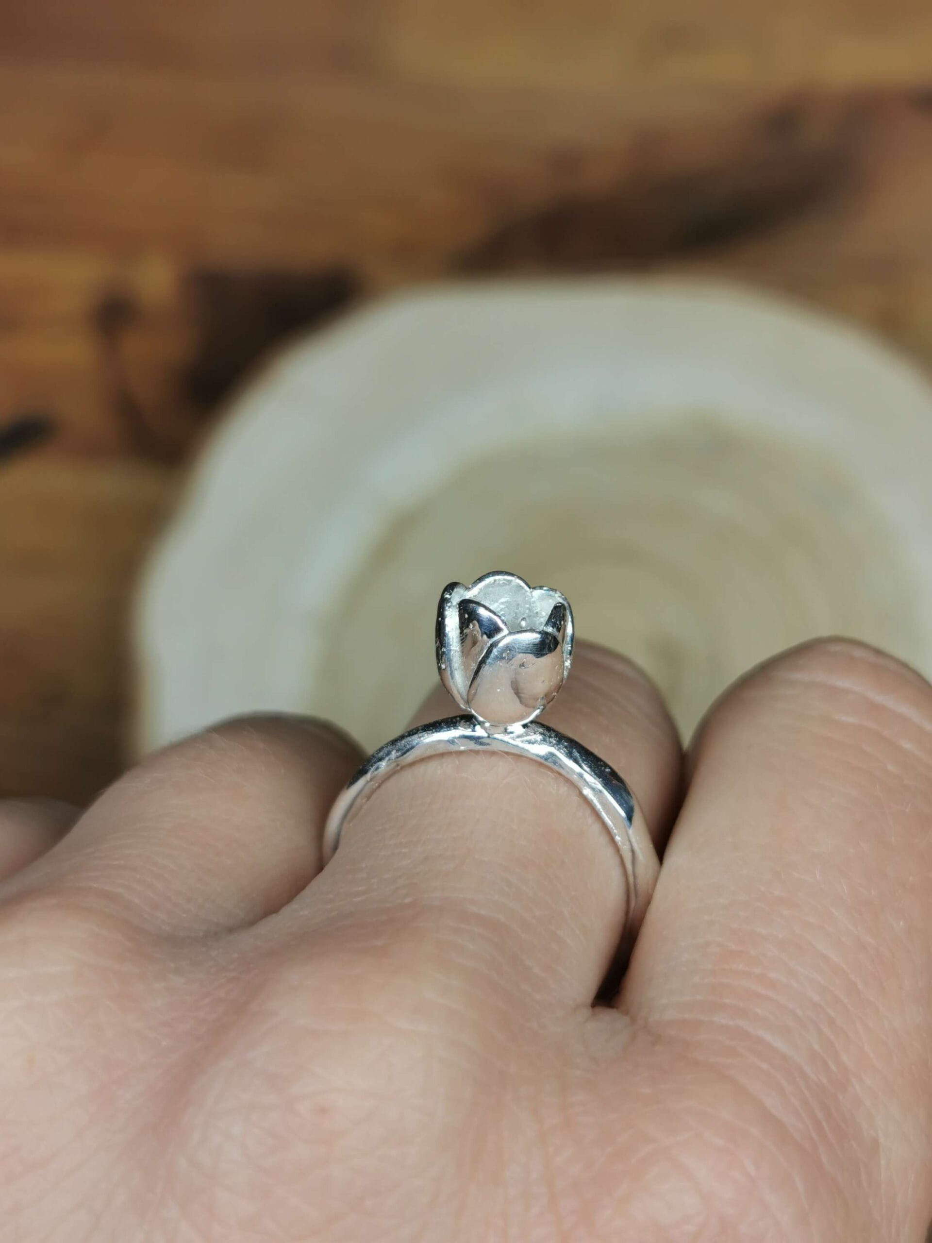⚜ Vienetinis sidabrinis rankų darbo žiedas su tikrovišku tulpės žiedu.⚜ Prabuota Lietuvos prabavimo rūmuose, sidabro praba 925, žiedo svoris 3,93 g.⚜ Žiedas taip pat gali būti nešiojamas ir kaip pakabukas. ⚜ Dydis 17, 5 (esant poreikiui gali būti šiek tiek didinamas, ar mažinamas, dėl dydžio keitimo kreiptis el. paštu).⚜ Papuošalas parduodamas supakuotas medinėje rankų darbo dėžutėje.