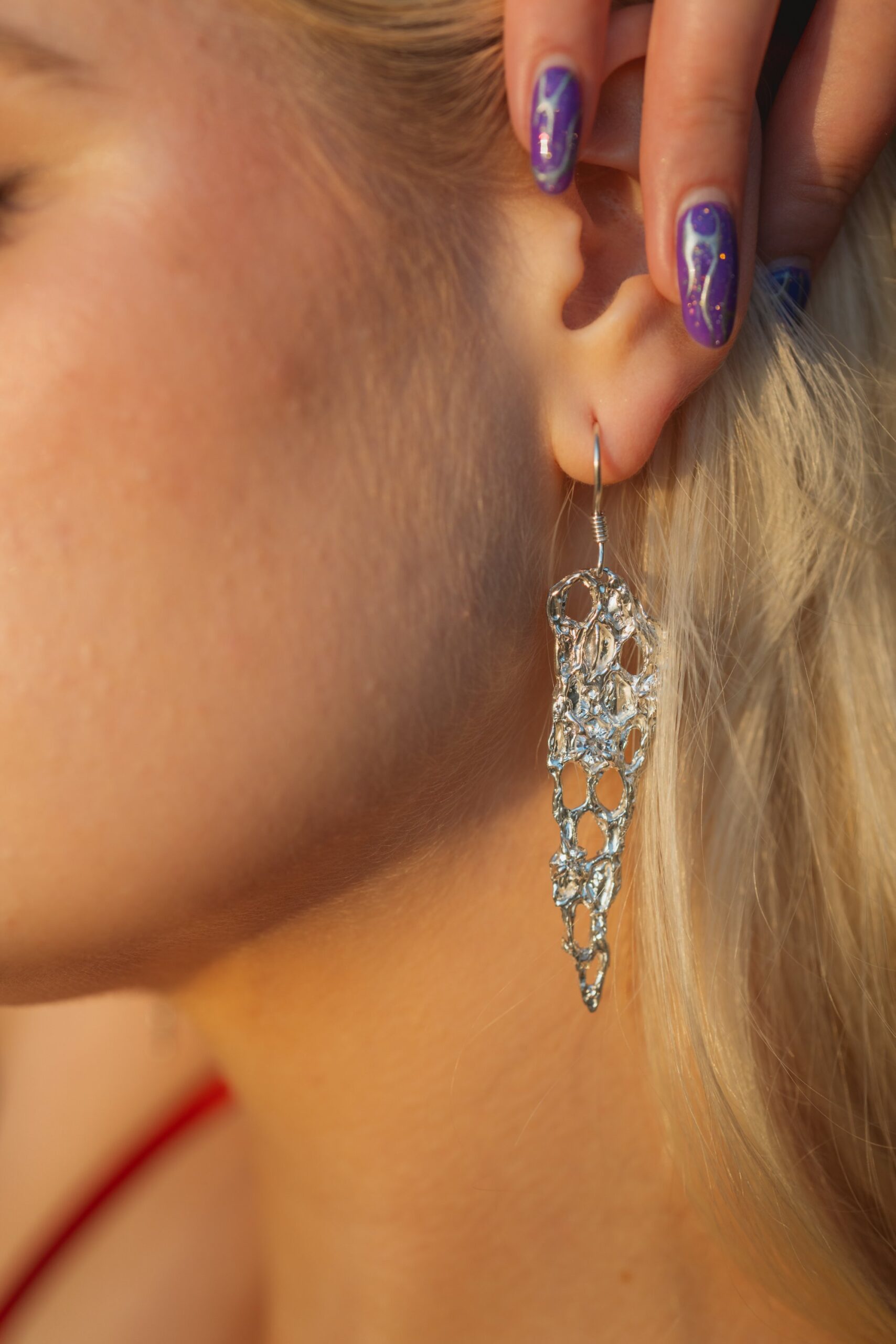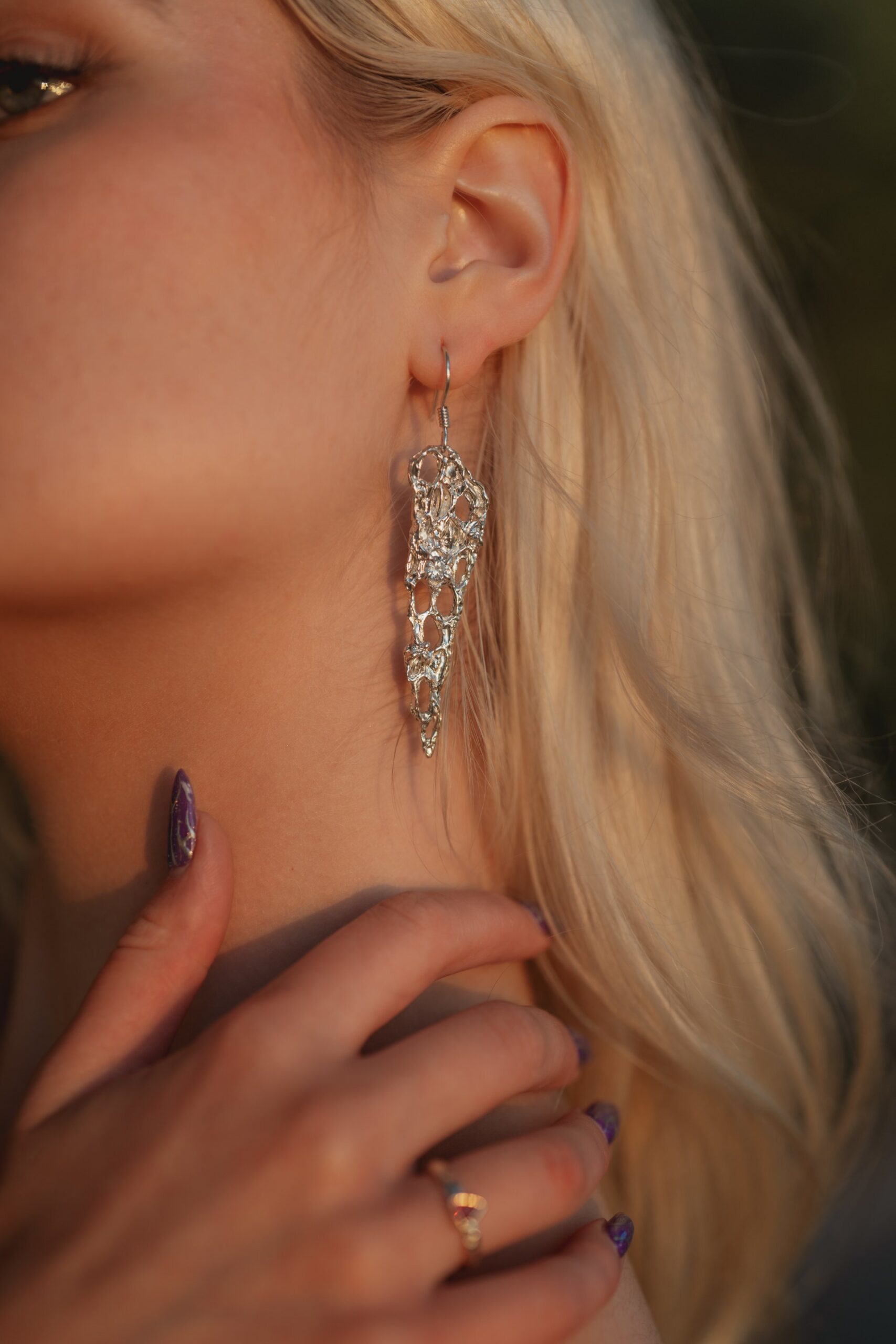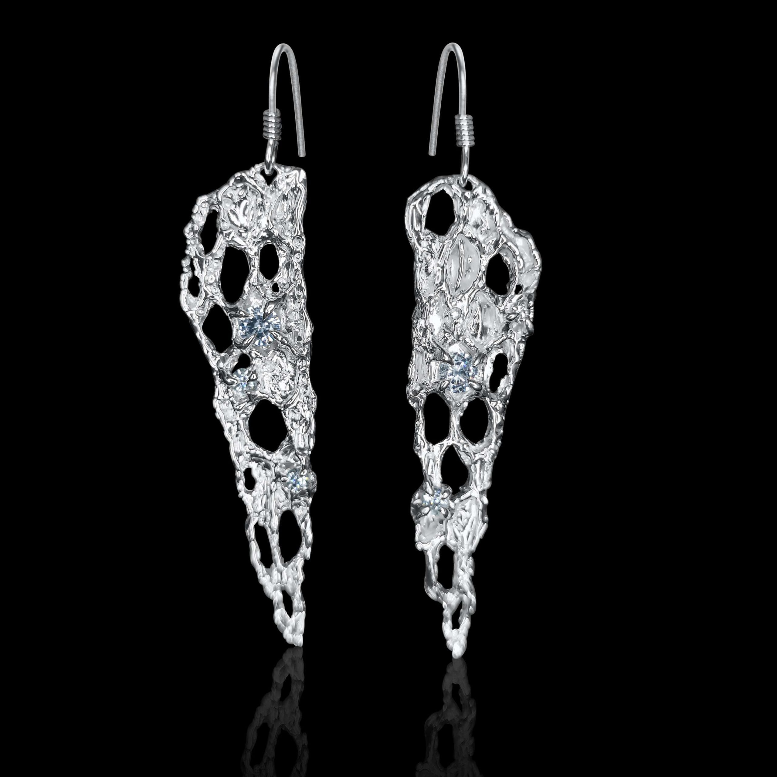 ⚜︎ Sidabriniai auskarai su moisonitais.⚜︎ Auskarai bei jų užsegimai sukurti iš 925 prabos sidabro.⚜︎ Auskarų poros svoris 11, 95 g, prabuoti prabavimo rūmuose. ⚜︎ Auskarų ilgis 6 cm, su užsegimu 8 cm.
