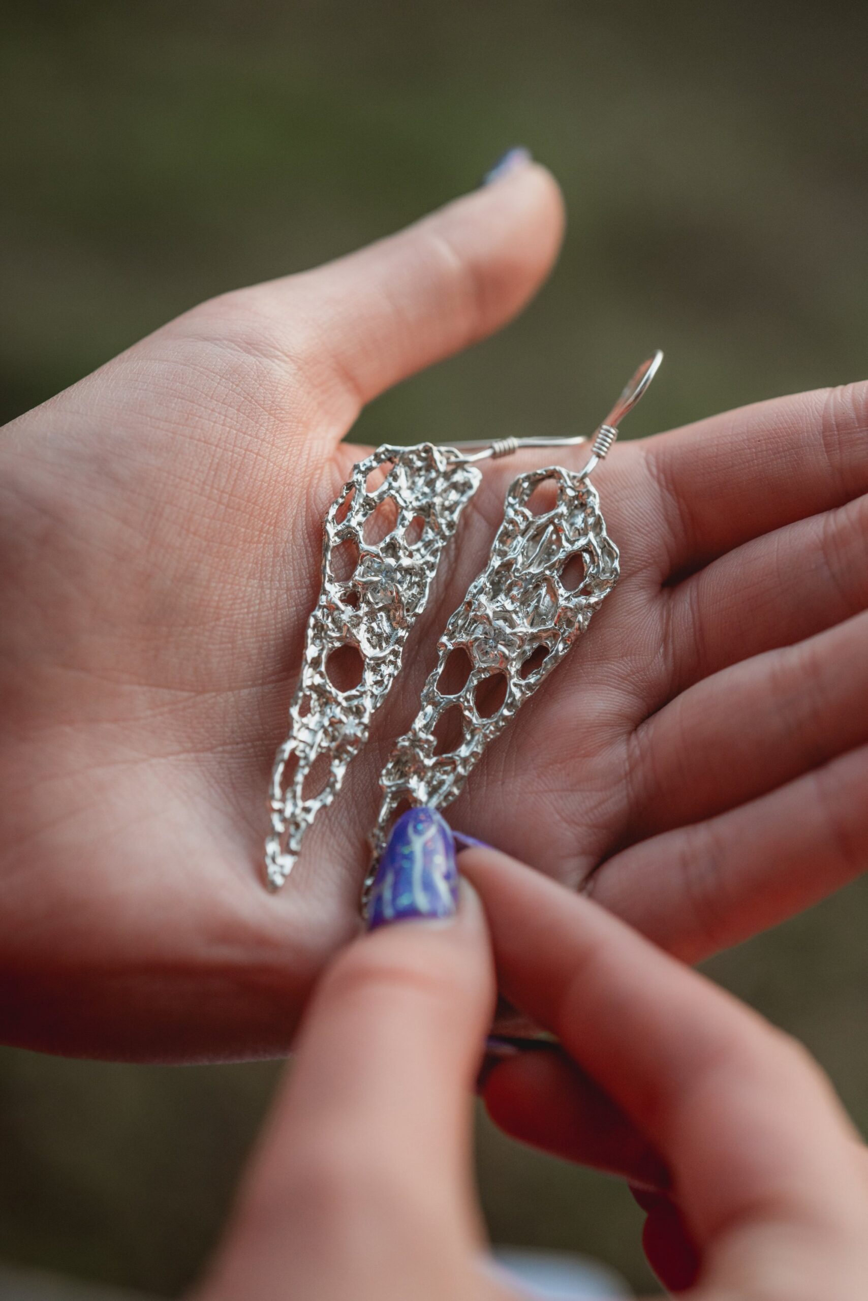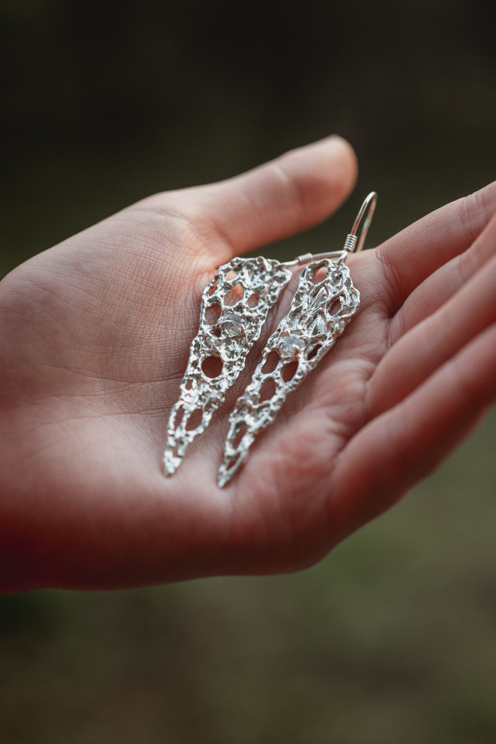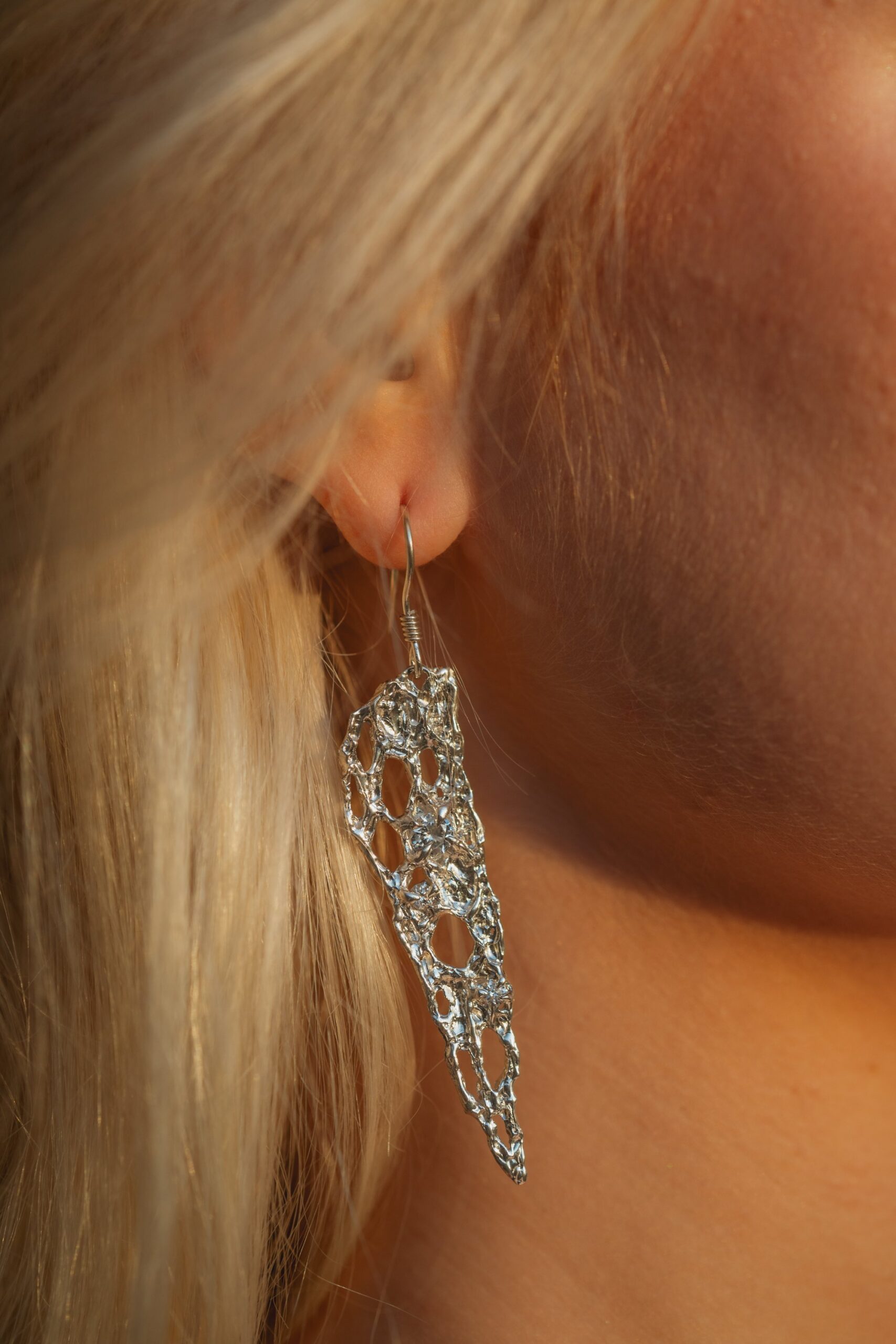 ⚜︎ Sidabriniai auskarai su moisonitais.⚜︎ Auskarai bei jų užsegimai sukurti iš 925 prabos sidabro.⚜︎ Auskarų poros svoris 11, 95 g, prabuoti prabavimo rūmuose. ⚜︎ Auskarų ilgis 6 cm, su užsegimu 8 cm.